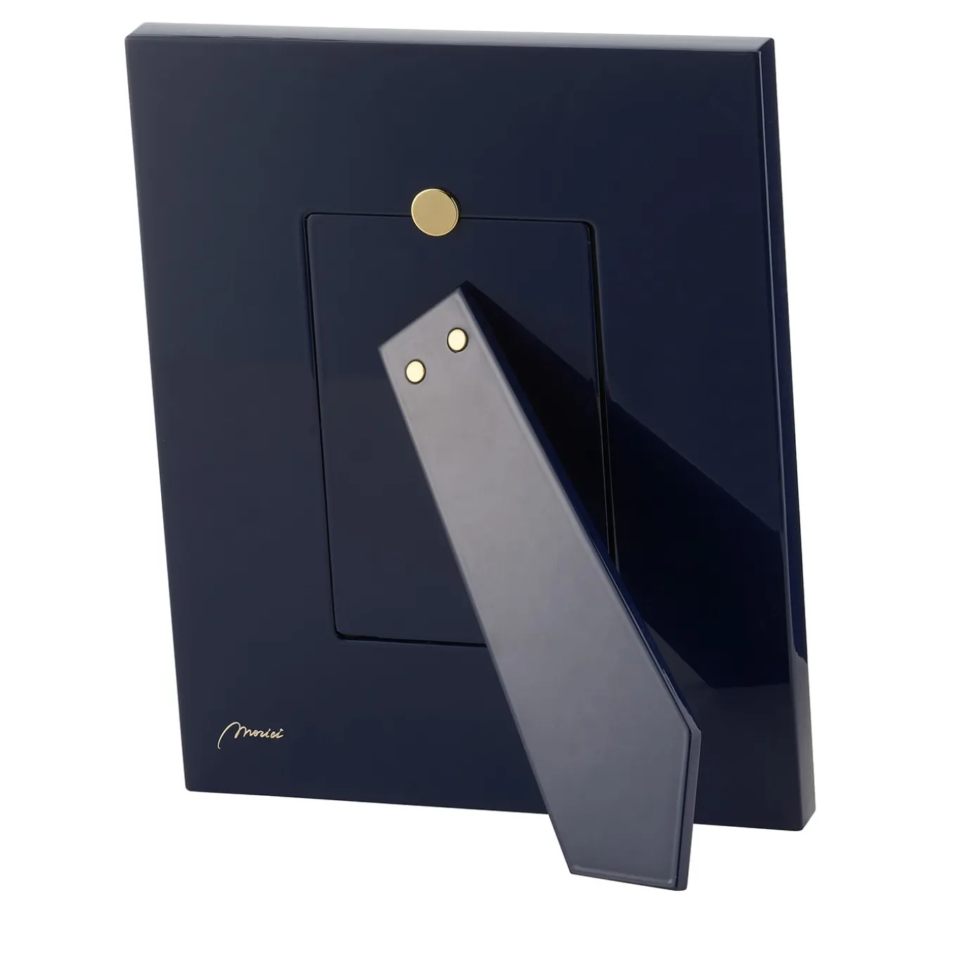Shades of blue and gold evocative of stunning coastal scenarios distinguish this precious photo frame. Crossed by golden profiles that stress the contrast between the dynamically-cut inlays of rosewood, prized Bolivar, ebony, and ash, the frame flaunts a brushed and mirrored finish favoring to lean on its marvelous and unrepeatable details. Each piece is crafted by hand.