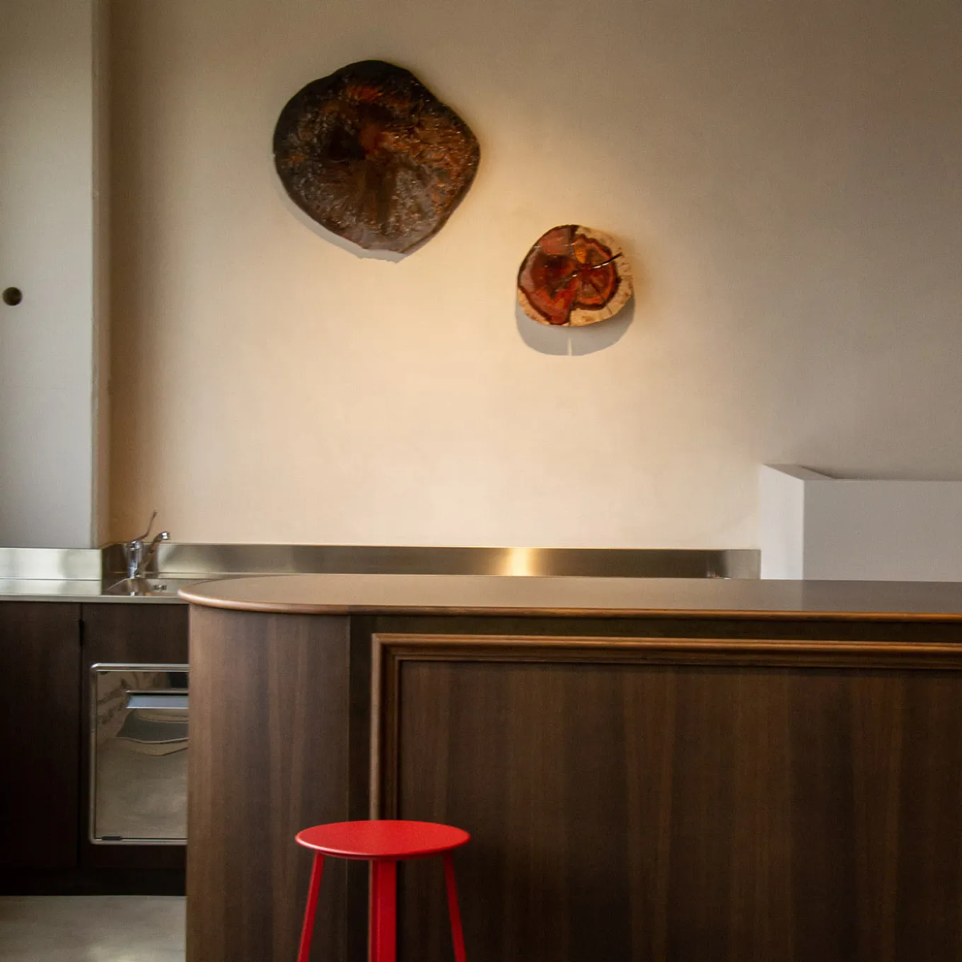 Nature and art come together in a unique sculpture by ROU Materiaal where a section of salvaged elm wood reveals its inner secrets and raw, primitive beauty finding a new life in a modern and contemporary home. Through a combination of techniques that enhance natural veins or imperfections with others that give a more contemporary texture, the surface is treated with clear epoxy resin and painted by hand with acrylic colors to obtain a breathtaking texture reminiscent of rocks eroded by the sun, sands, and water. The raw materials used in the manufacturing process differ every time, consequently, there may be natural variations that are not to be considered product flaws.