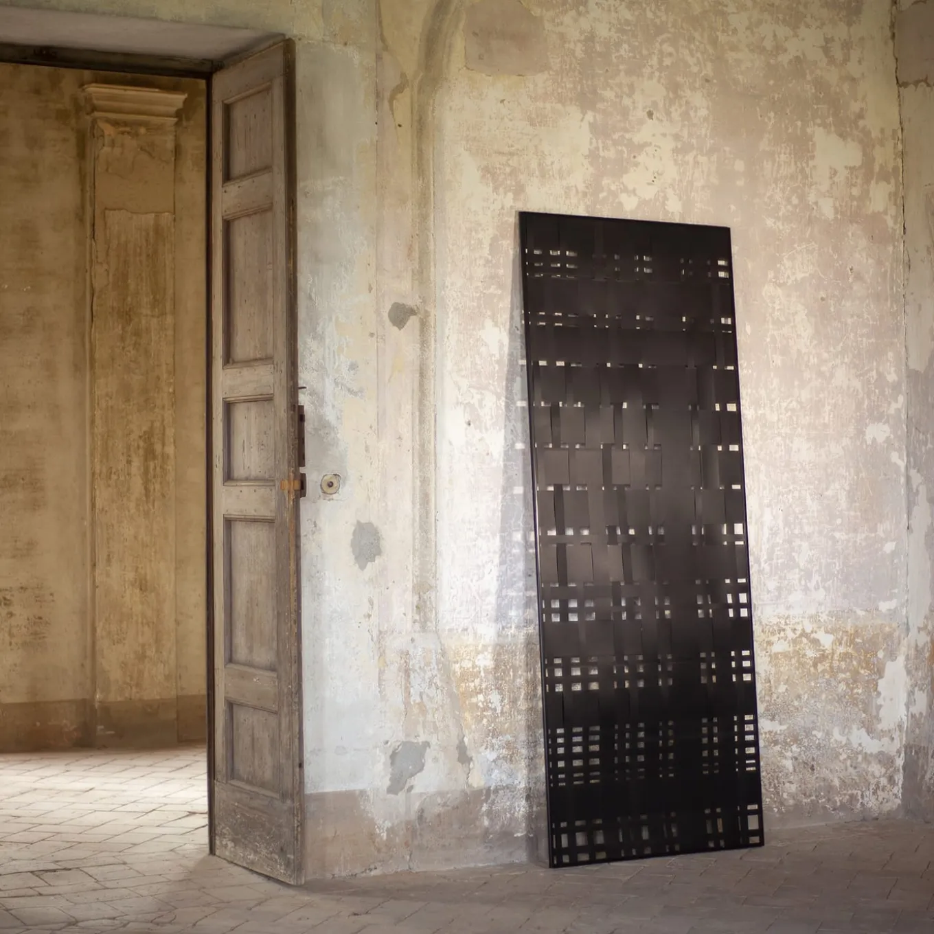 Named after the testudo technique of defense used by ancient Romans, this iconic wall sculpture is a symbol of Italian savoir-faire. Handcrafted of black Abatellis-lacquered metal, it is woven in a unique pattern personally tailored for its owner. Available in other finishes, please refer to the Concierge for options.