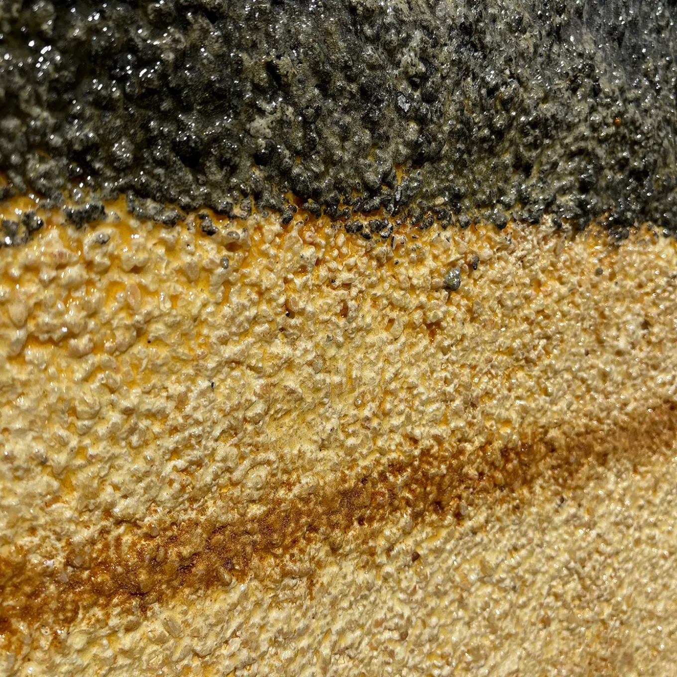 An abstract canvas artwork featuring a textured composition with a dark upper section contrasted by a sandy lower portion. Subtle resin accents highlight a minimalist floral motif that appears to emerge organically from the surface. The piece evokes themes of contemplation, balance, and restrained elegance, inviting reflective engagement through its carefully balanced layers and thoughtful form. Suitable as a sophisticated addition to contemporary interiors. It’s a unique piece.