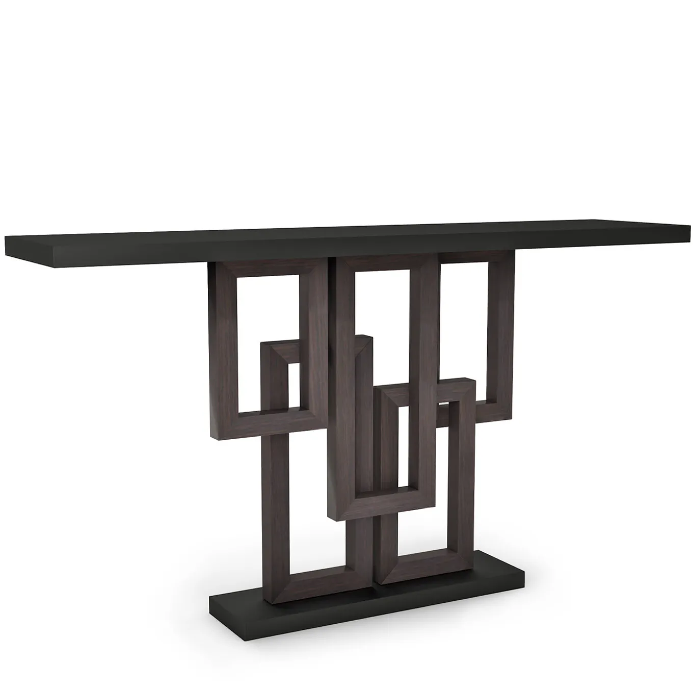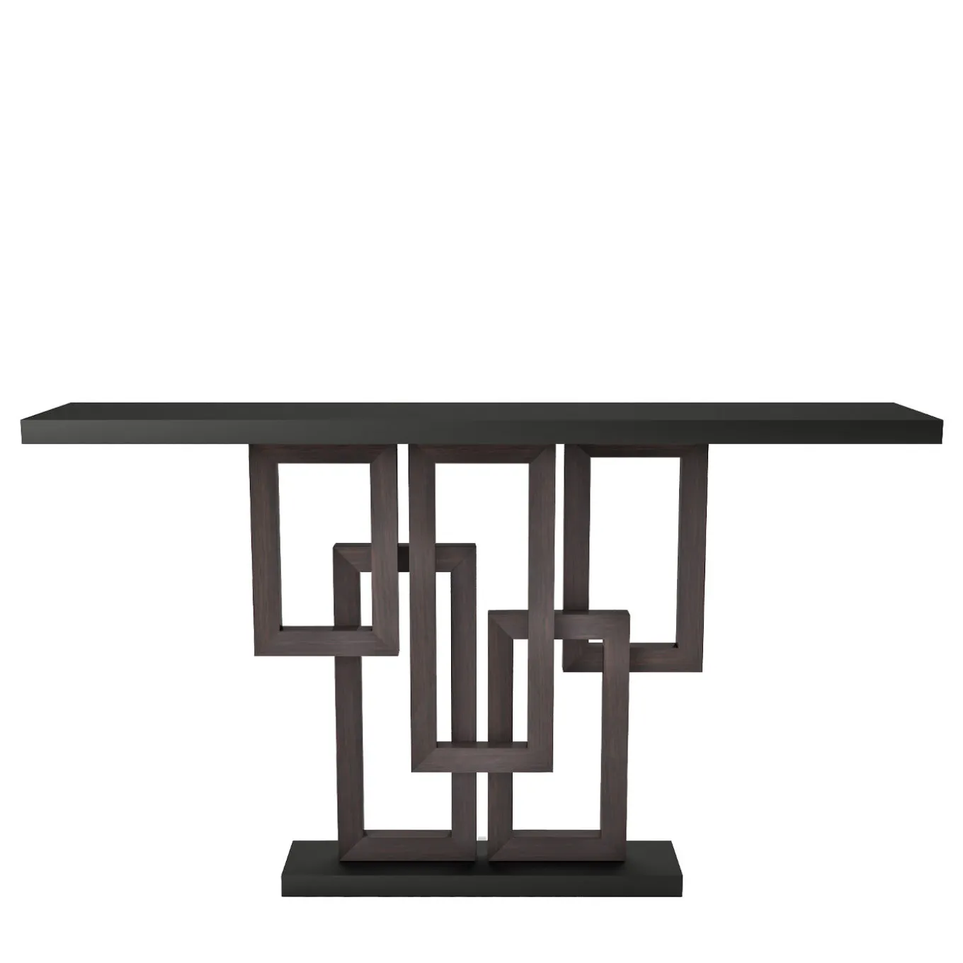 On a stunning geometric base, the Thomas Console is a stand-out style by Isabella Costantini. Crafted by skilled Italian artisans, the long rectangular console is coated with a matte brown finish, allowing the decorative rectangular base to stand out against a light wall and imbibe any room with sophisticated elegance.