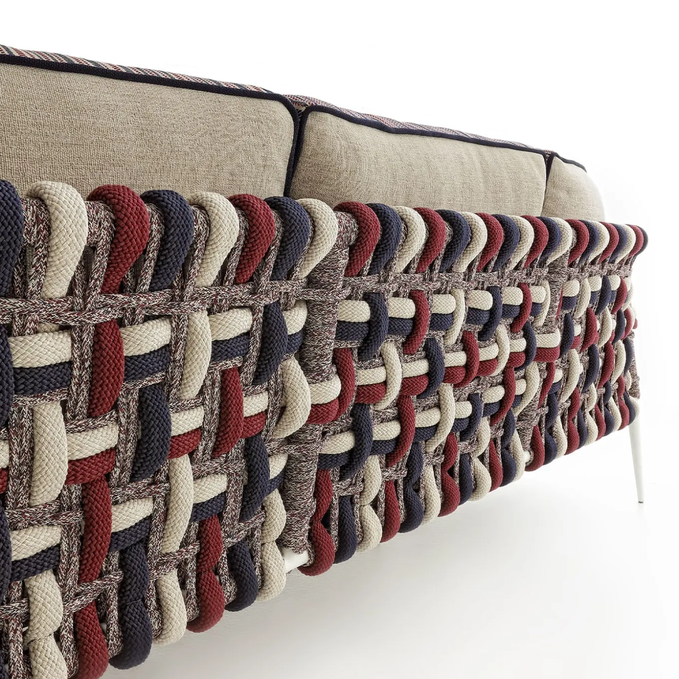 Eva collection is characterized by combining classic elegance with a modern look. The curves of its soft form, and the seat supported by elastic straps for extra comfort. The colorful yet natural-looking tones of the braids complement the elegance of the powder coated aluminum frame, creating a perfect balance between technical and sensory appeal. Fabrics made from Olyna yarn were used for the upholstery cover.