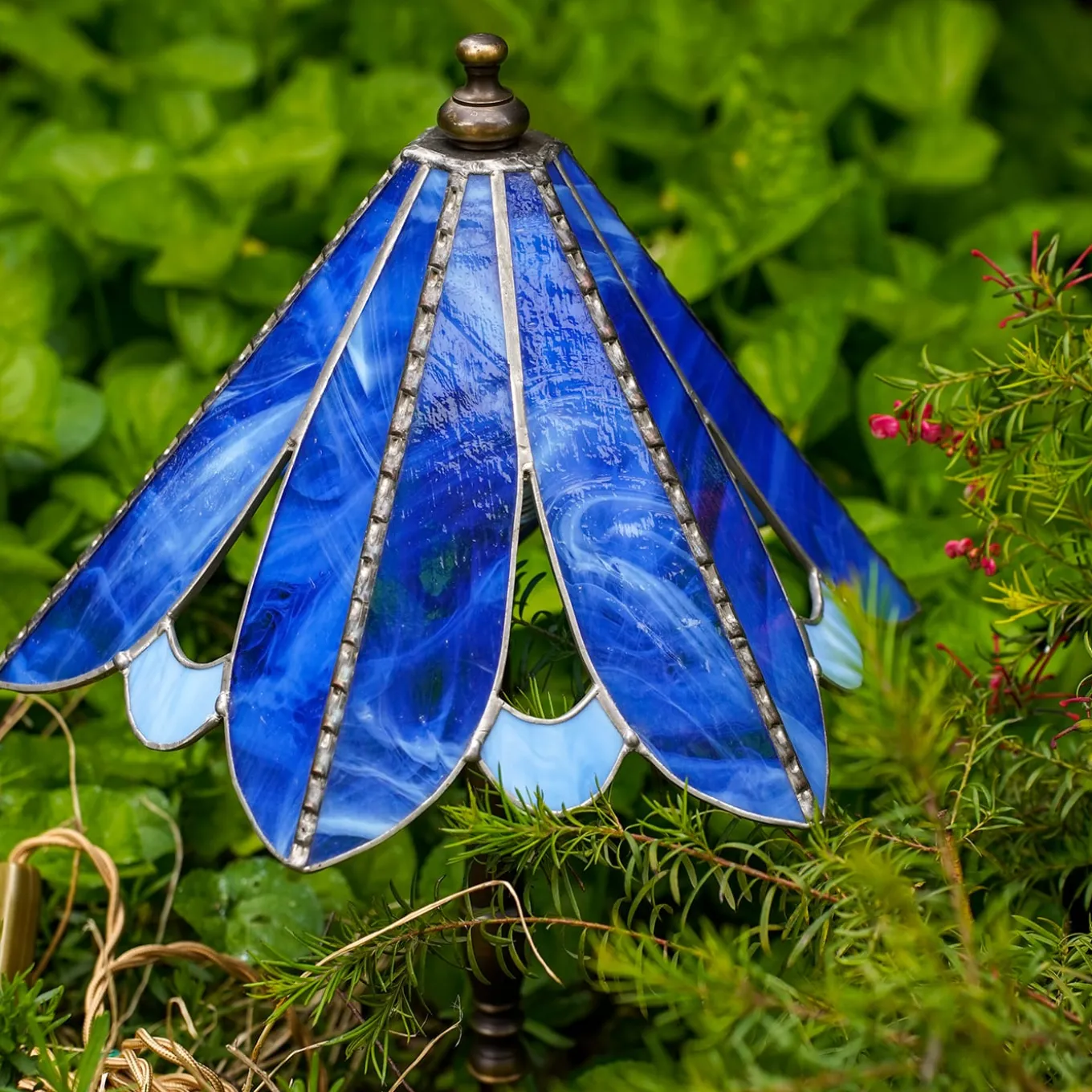 An ode to artisan mastery, this table lamp is sure to seduce with its precious combination of artistic glass inserts and minutely chiseled graceful silhouette. Striking in their vivid blue tones, each of the petal-like glass elements reveal the shape an upside-down flower bud here in charge of a romantic light diffusion in the surroundings. Please consult the Concierge for available customization options.