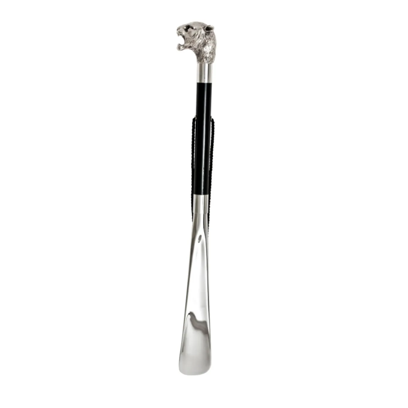 The elegant and stylish Tiger Shoehorn features a handle crafted from sterling silver plated marble powder. Featuring a polished black shaft and a silver finish on the lower part, this sophisticated accessory is the perfect compliment to your shoe collection.