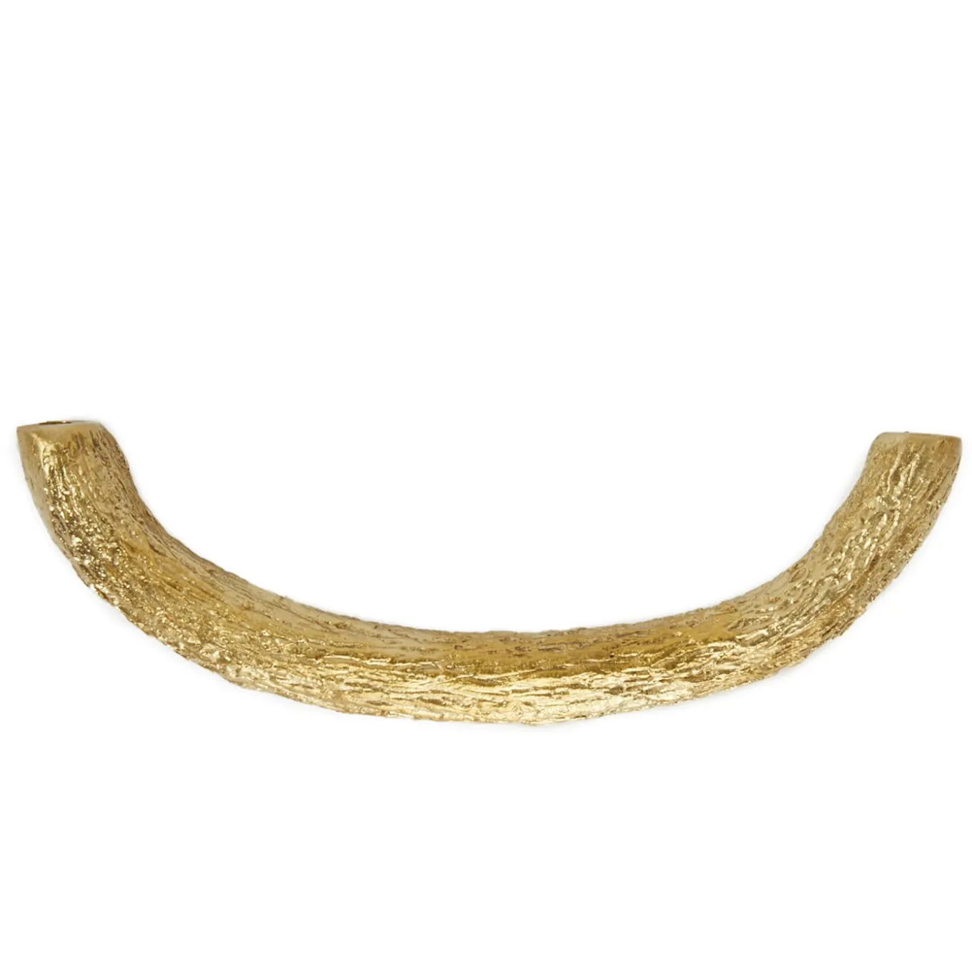 An extraordinary accent piece for a fine wooden cabinet or sideboard, this set of four handles boasts an iconic, refined shape inspired by a lime tree branch. Part of the Foresta Nera series designed by Nicole Valenti, each piece features a practical curved silhouette handcrafted of polished natural brass.