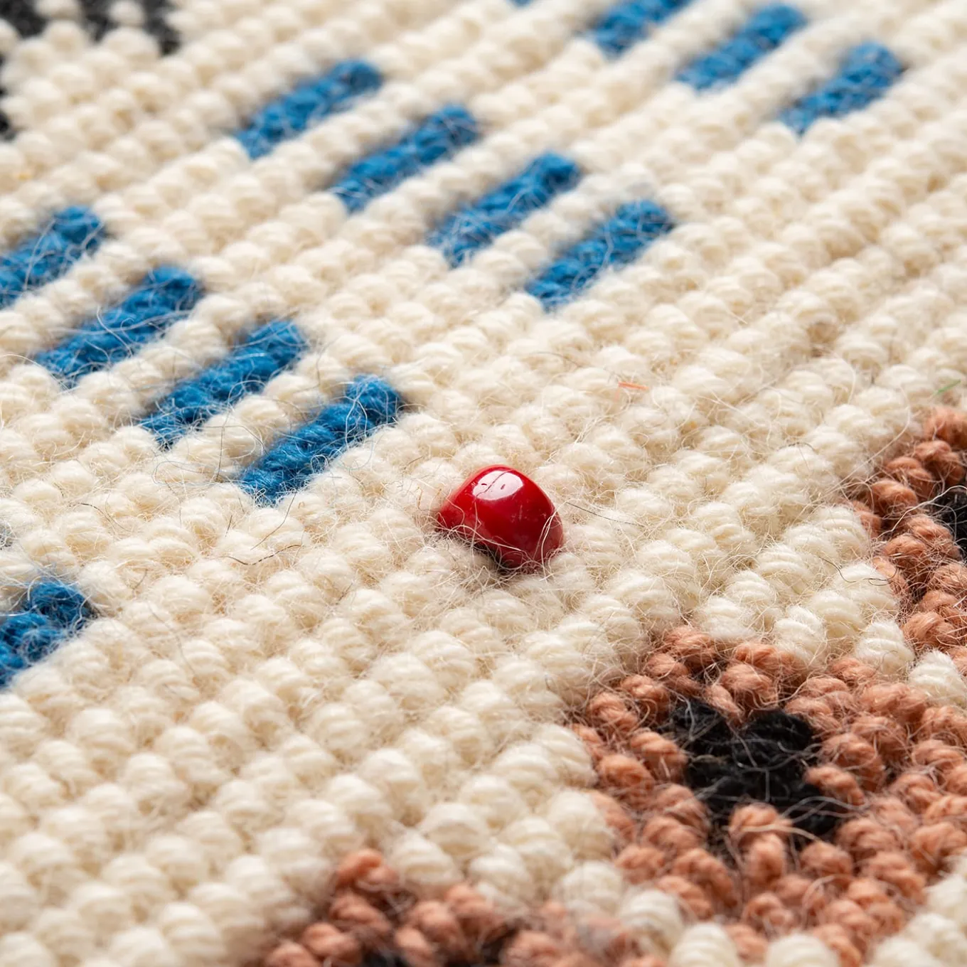 Hand-made in Sardinia using an ancient grain-weaving technique called “a pibiones” (dialectal word for “grain”), this rug is the perfect expression of the intersection between the archaic art of weaving and a modern, contemporary perspective. The geometric symbols, which can be found in the most ancient weaving techniques, have been redesigned to reveal, with a visual power that is both simple and strong, the rug’s timeless character.