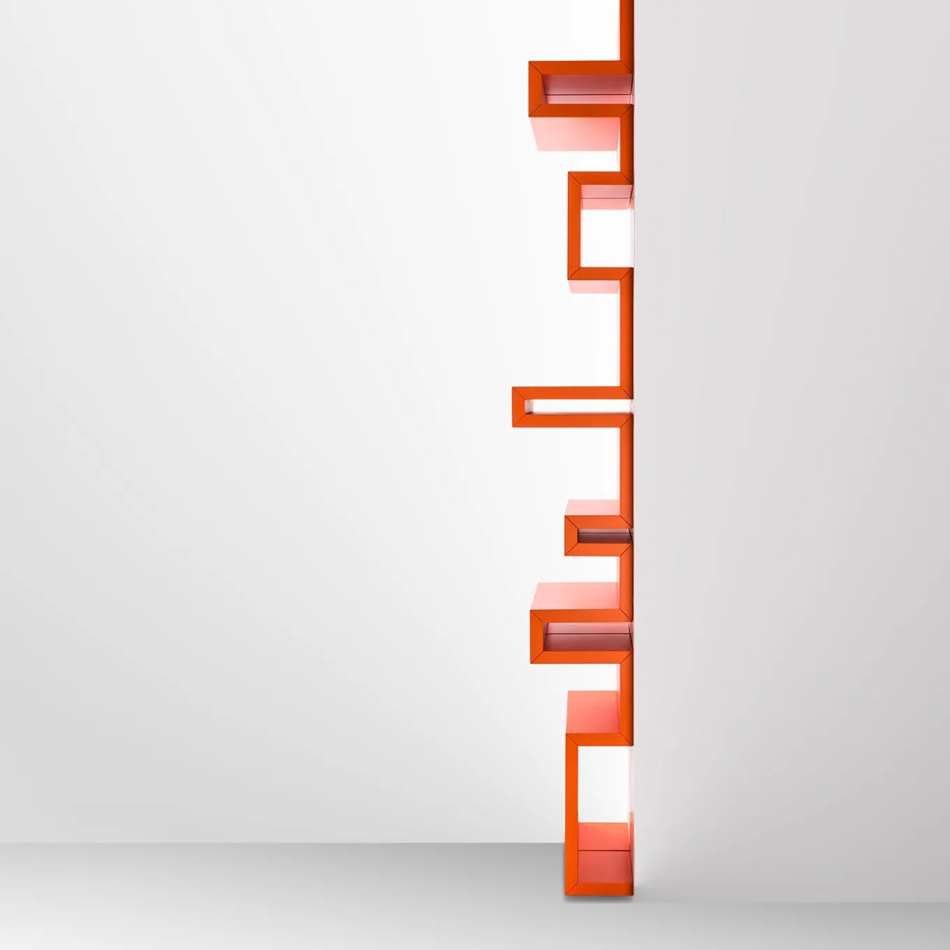 Distinguished by a lively and original orange shade, this wall bookcase will make for an iconic addition to a contemporary interior of both minimalist and eclectic inspiration. Part of the Todo Collection designed by Giulia Contaldo, it is made of wood and plexiglass. Available in other colors and sizes, please consult the Concierge for further information.