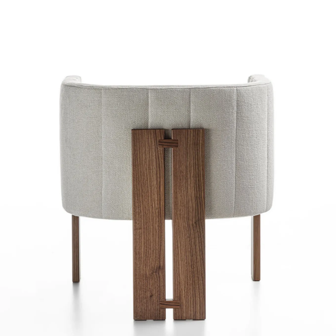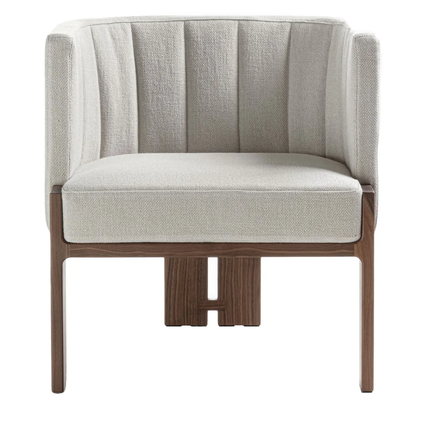 Welcoming and bright, this compact armchair is an exclusive design where contrasts harmoniously coexist. The rigor of its Canaletto walnut base is contrasted by the dramatic curve tracing its fully enveloping, padded shell, a delicate quilted texture enlivening the white fabric cover for a statement of understated elegance. Please contact the Concierge for the chair version.