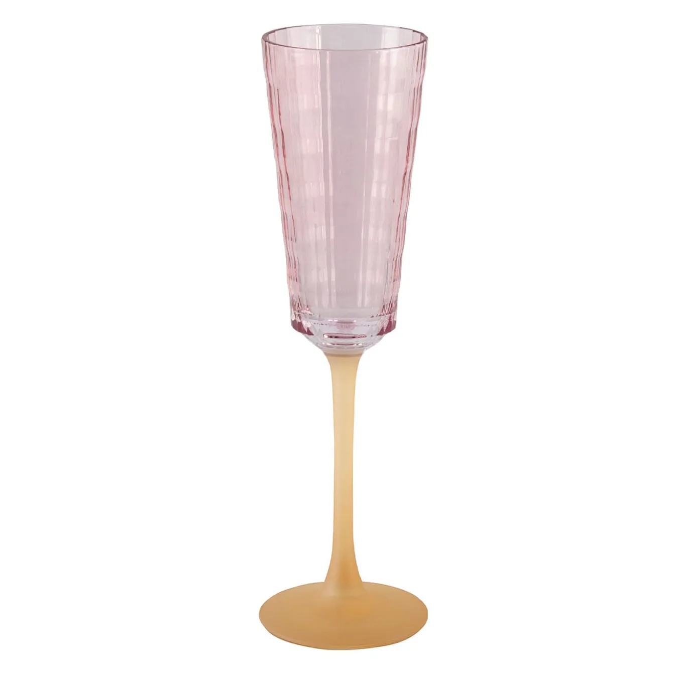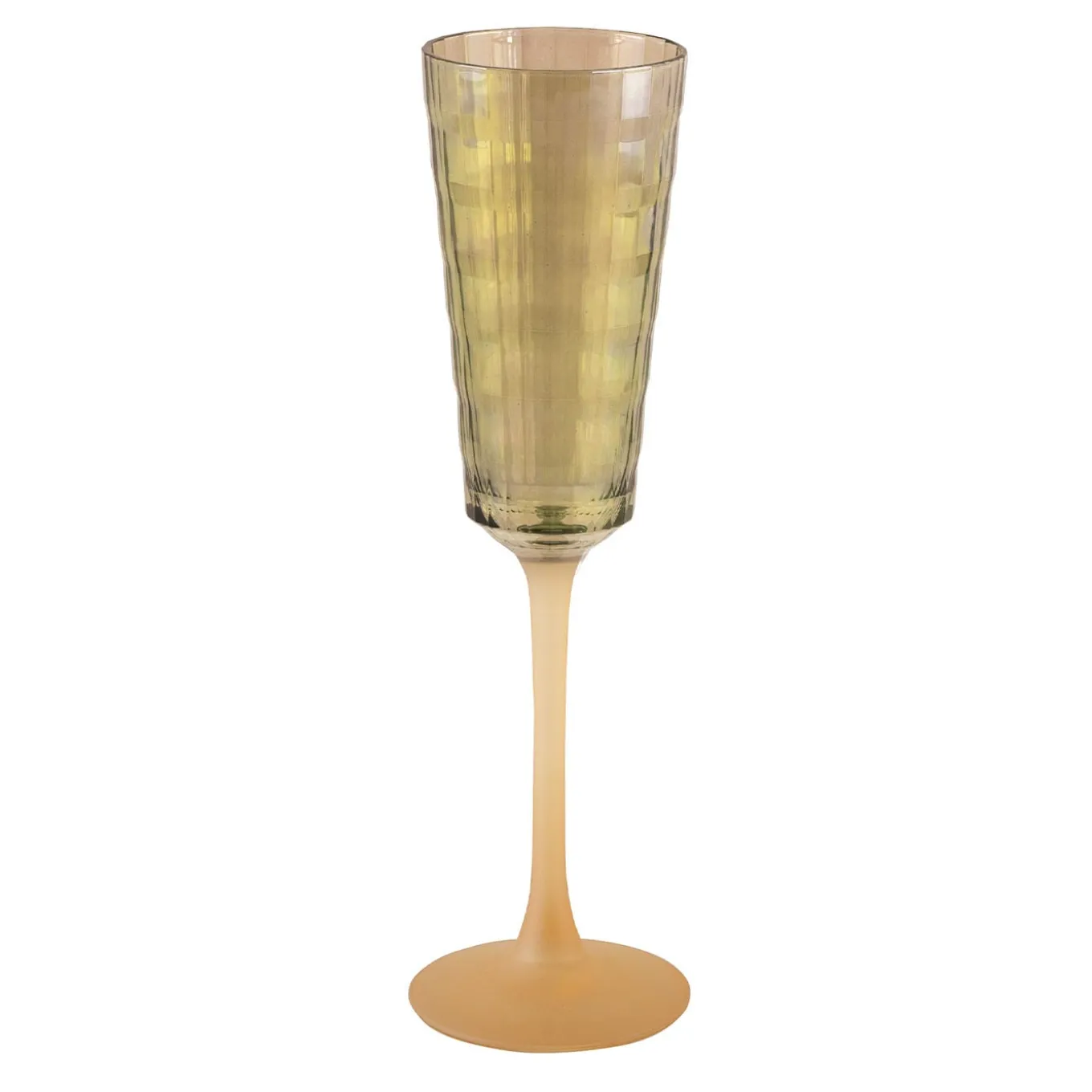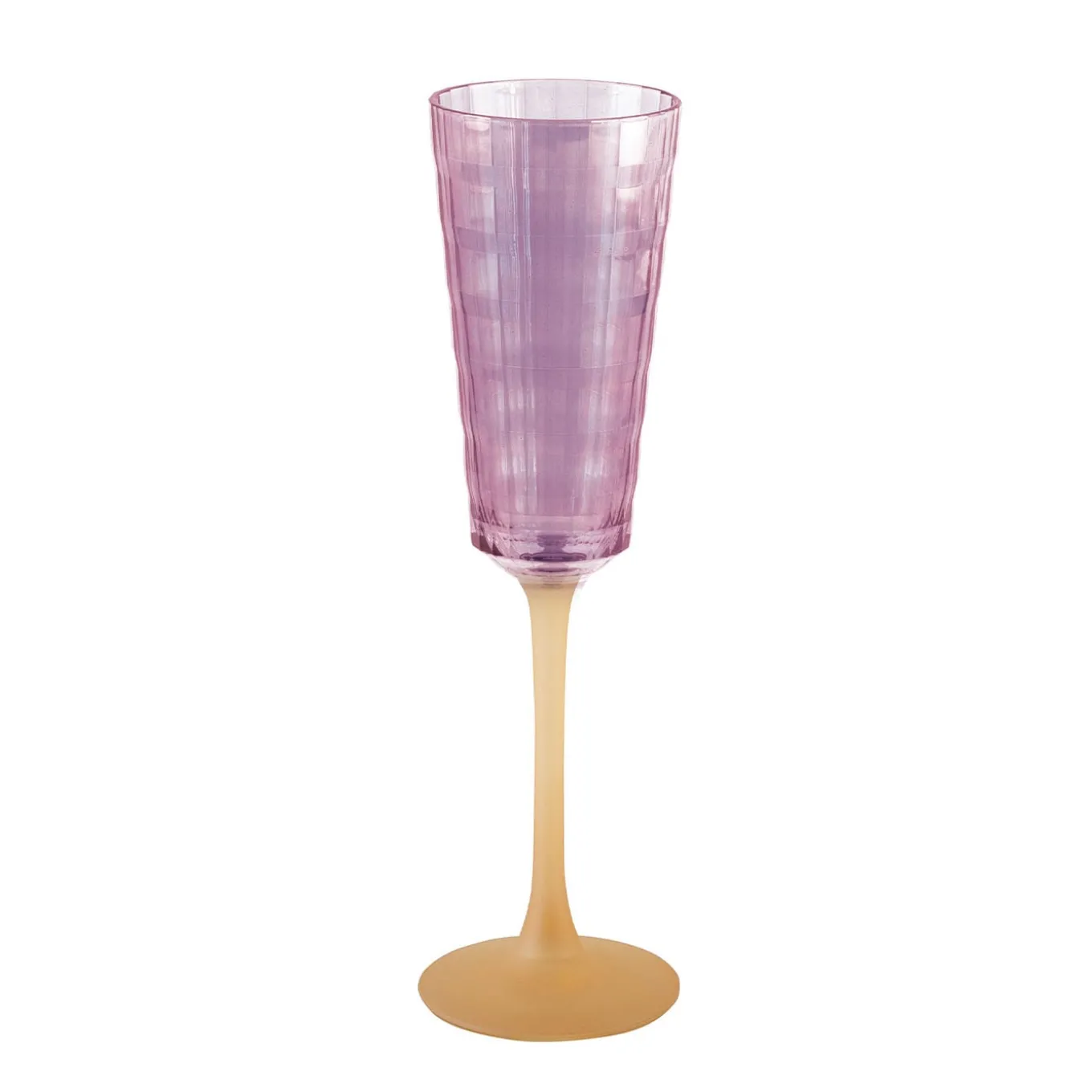Characterized by clean and essential lines, each flute of this set of six is superbly handcrafted of glass and showcases a splendid textural motif on the bowl. Part of the Riflessi Collection of refined glassware, this set is composed of two-tone pieces.
