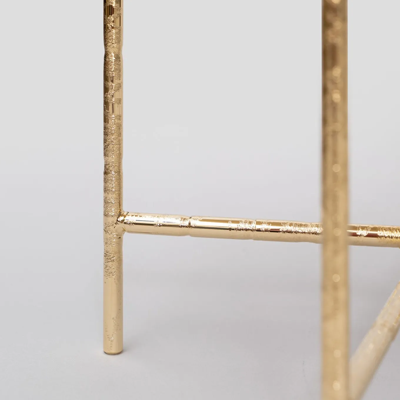 The Tornielli tables feature a glossy gold finish that contrasts beautifully with the rugged yet precise artisanal craftsmanship of the tabletop and legs. The carefully crafted surface catches and reflects golden light, enhancing the tables’ elegance and making each piece unique. These striking tables combine refined design with artisanal quality, offering a captivating visual experience.