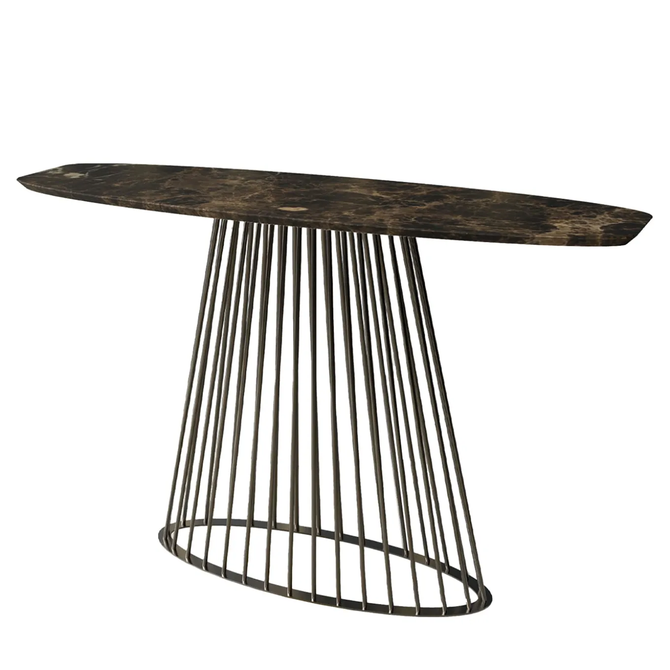Torres is a console table with a light design. The bases are composed of a radial bronze metal structure, while the tabletop is in Dark Emperador. Torres is also available as a dining table or as a set of tables, please consult the Artemest catalog for the entire collection.