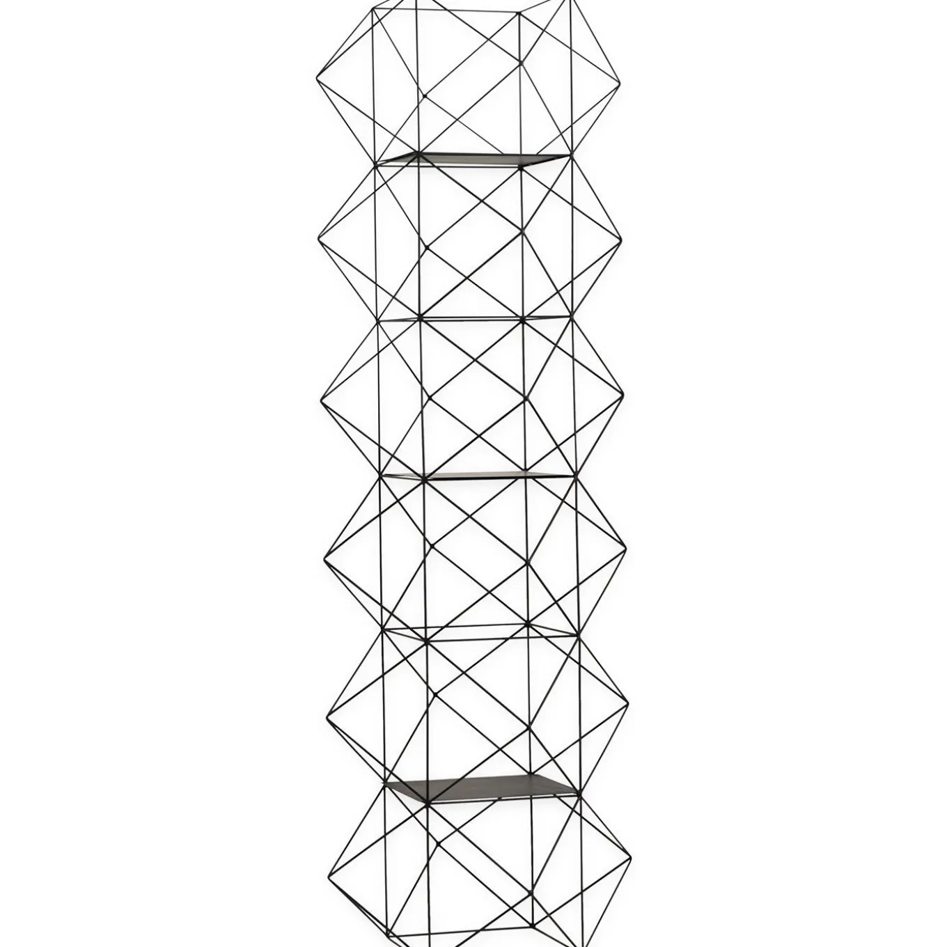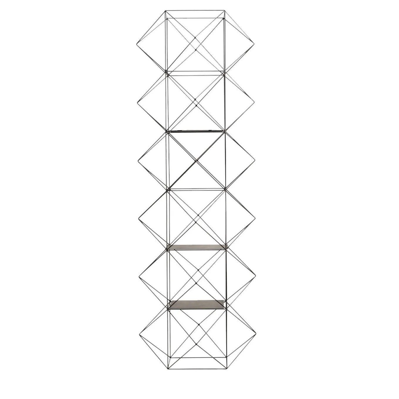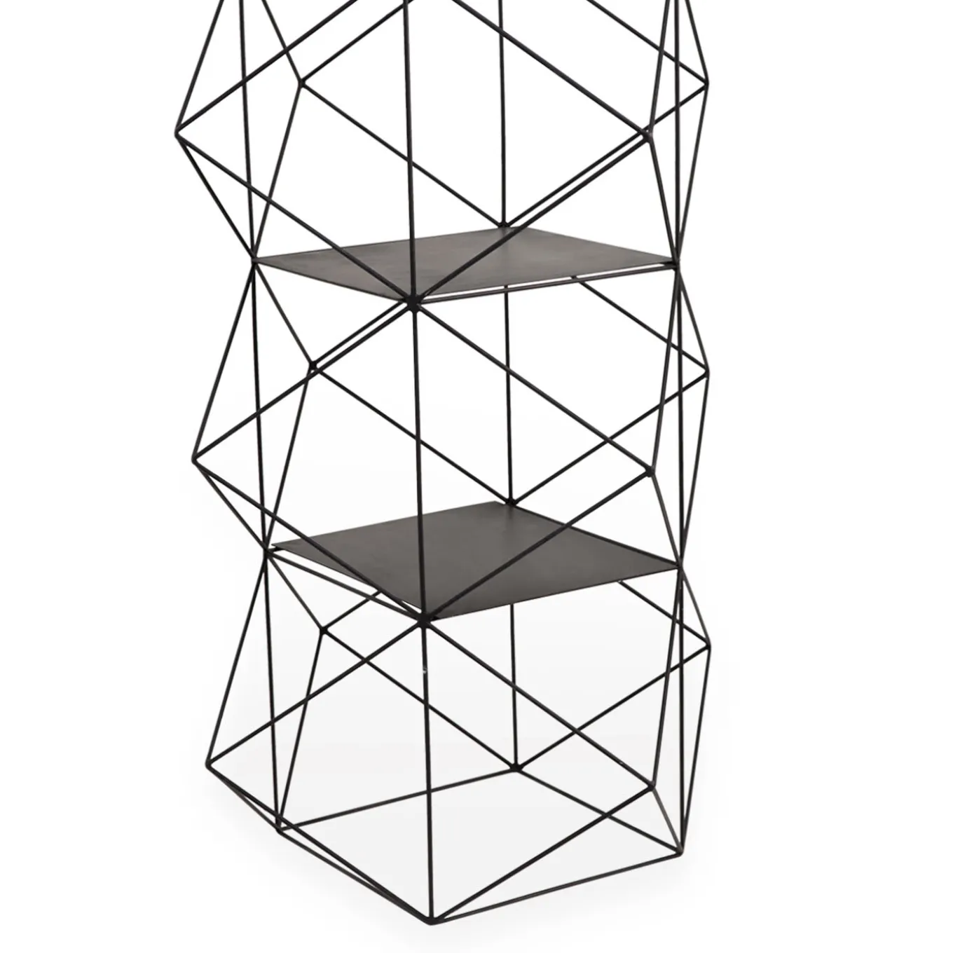 This exciting abstract sculptural bookcase is constructed in tempered iron wire. This furniture piece by Milan-based iron sculptor Antonio Sciortino features a dazzling geometric form contains five adjustable shelves.