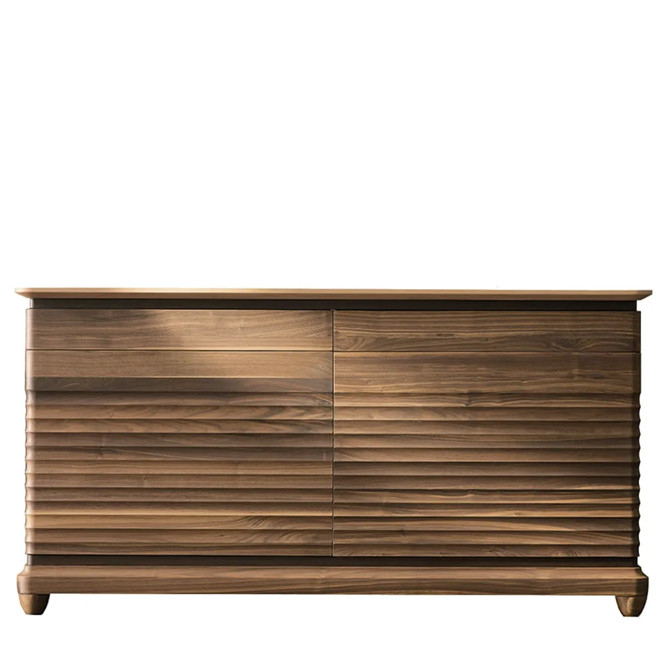 Contemporary design and classic soul. This solid wood sideboard is the result of our artisans’ craftmanship and passion. The delicate wavy front creates a refined contrast between lights and shadows: this way, the cabinet looks different and more suggestive depending on the perspective.