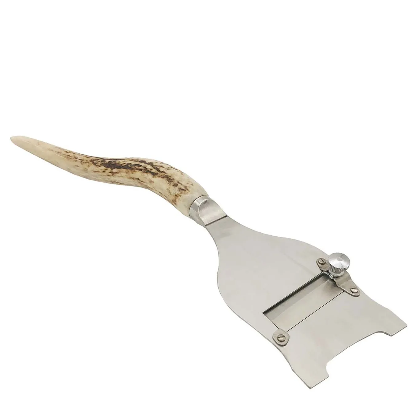An indispensable accessory in a gourmet kitchen, this truffle slicer has a stainless-steel blade that can be adjusted to obtain the desired-thin shavings. A genuine antler horn forms the elegant handle, offering a firm hold and a stylish decorative accent to this piece that will complement any Truffle Holder by the same designer.