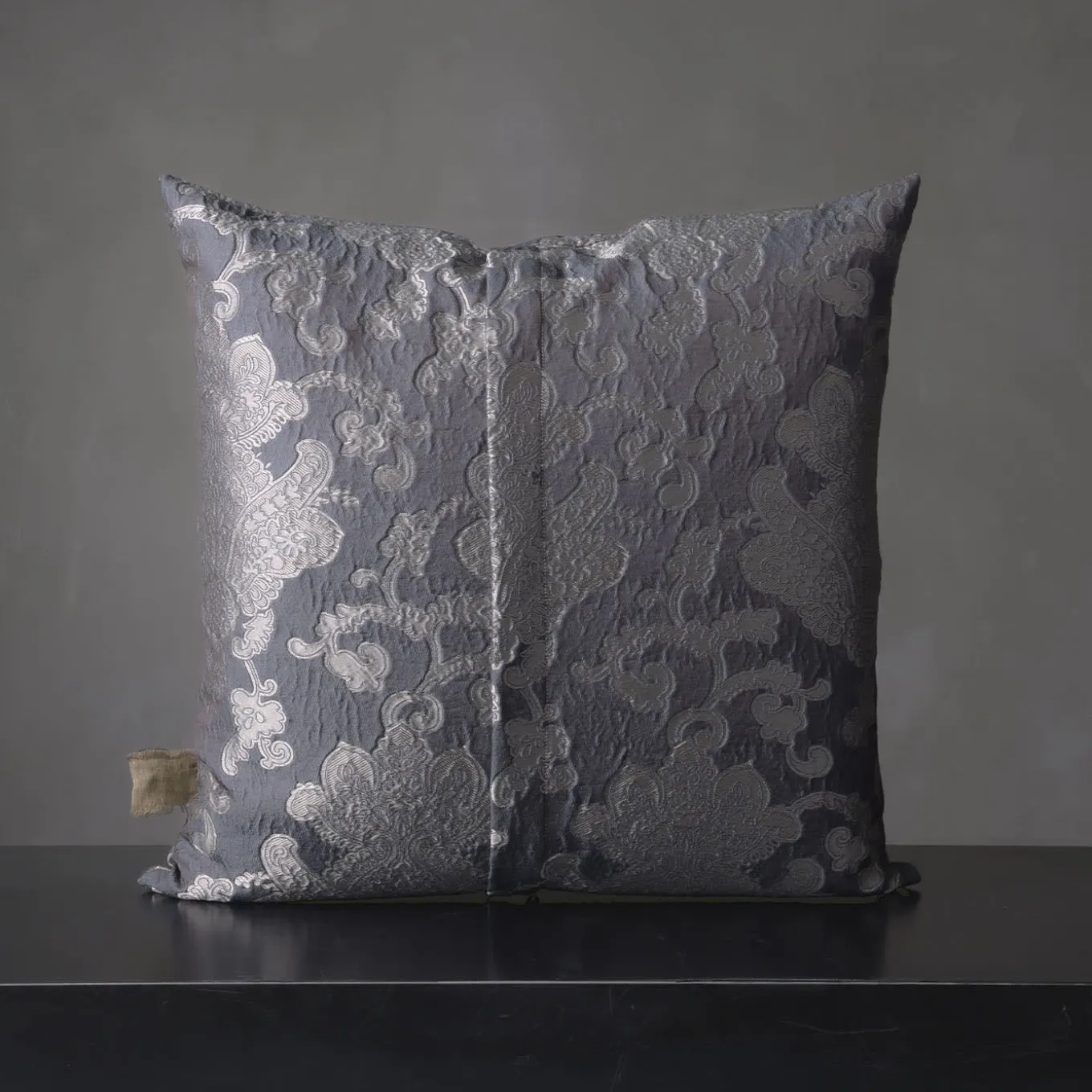 Fancy in its minutely detailed floral jacquard design, this square cushion will surely capture the eye with its intricate detailing and refined cool tones. The silvery decoration echoes a distinct sense of romanticism, suggesting the cushion is an ideal solution for accenting otherwise restrained sofas or beds. More color variants are available in the Artemest catalog.