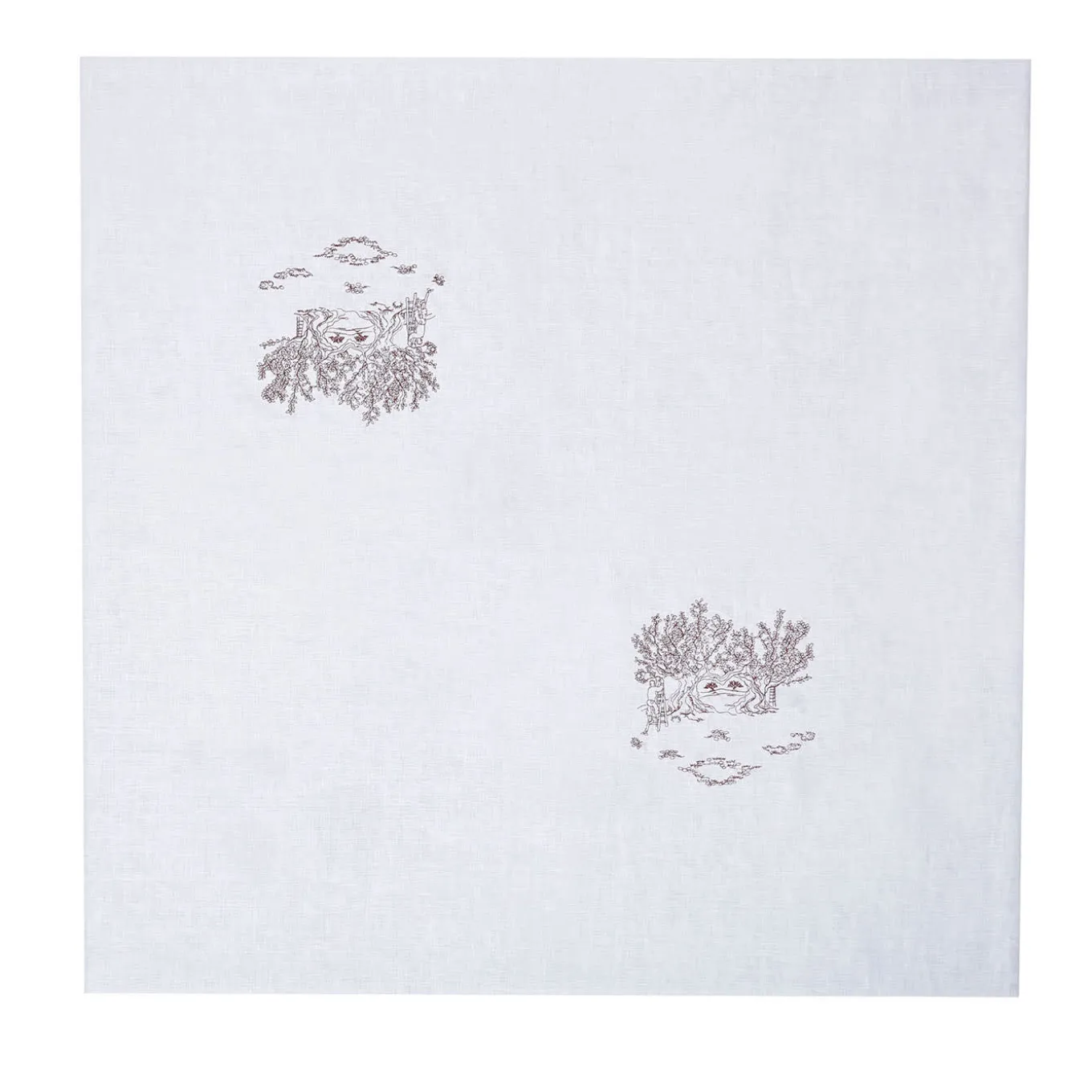 Two glimpses of olive groves drawn through painstaking manual embroideries in Mako cotton distinguish this precious white tablecloth. An homage to the Apulian landscape and culture, it is fashioned of Maters of Linen-certified white linen, fine fabric sure to elegantly accent all kinds of table settings. Carefully embroidered by hand by local artisans, it is also available in different sizes.
