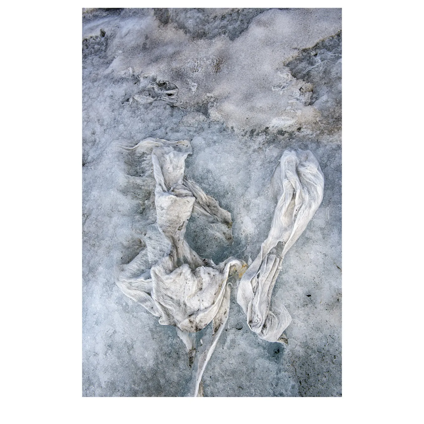 A distinctive artwork from the Ultimate Landscapes 10 Collection of photographs made in 2021 by photographer Claudio Orlandi, this stunning image portrays details and fragments of microplastics and fabric merging with the ice of the Stelvio glacier in Northern Italy, seen through a macro lens. Printed on Canson Fine Art Baryta Photographique Matt II paper, other similar pieces are available in the Artemest catalog. It is possible to print the photograph in different sizes. Please ask the Concierge for further details.