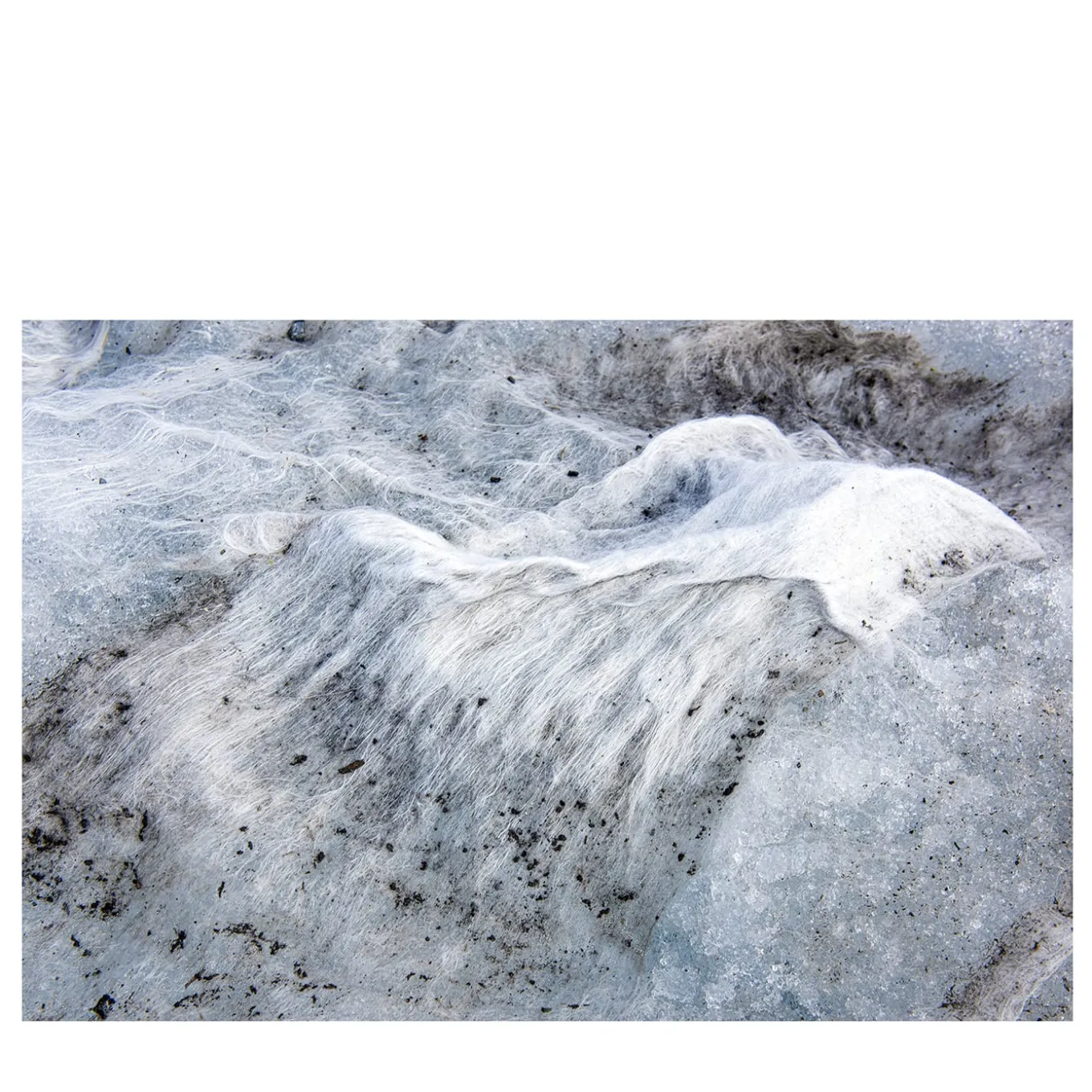 Part of the Ultimate Landscapes 10 Collection of photographs made in 2021, this distinctive work by Claudio Orlandi depicts fragments of microplastics merging with the ice of the Stelvio glacier in Northern Italy, seen through a macro lens. Printed on Canson Fine Art Baryta Photographique Matt II paper, other pieces from this series are available in the Artemest catalog. It is possible to print the photograph in different sizes. Please ask the Concierge for further details.