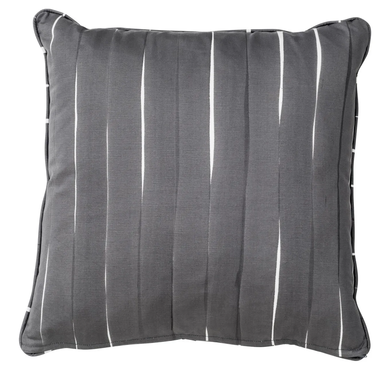 This elegant cushion has a down insert with a cover decorated using the pigment printing technique with a striking geometric pattern of thick light grey lines over a white background.
