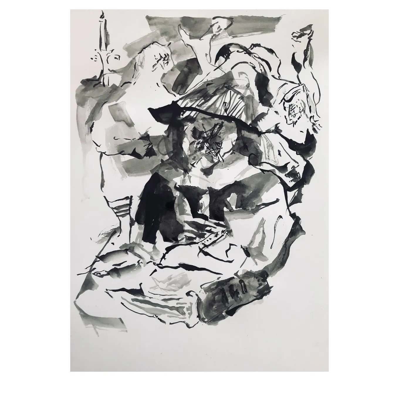 A candle, an athlete, a monk, and a mermaid coexist in this original 2022 painting. Painted with ink on paper, the subject is deliberately chaotic, shifting from clarity and confusion depending on the perspective of the observer. An artisan frame is included in the delivery.