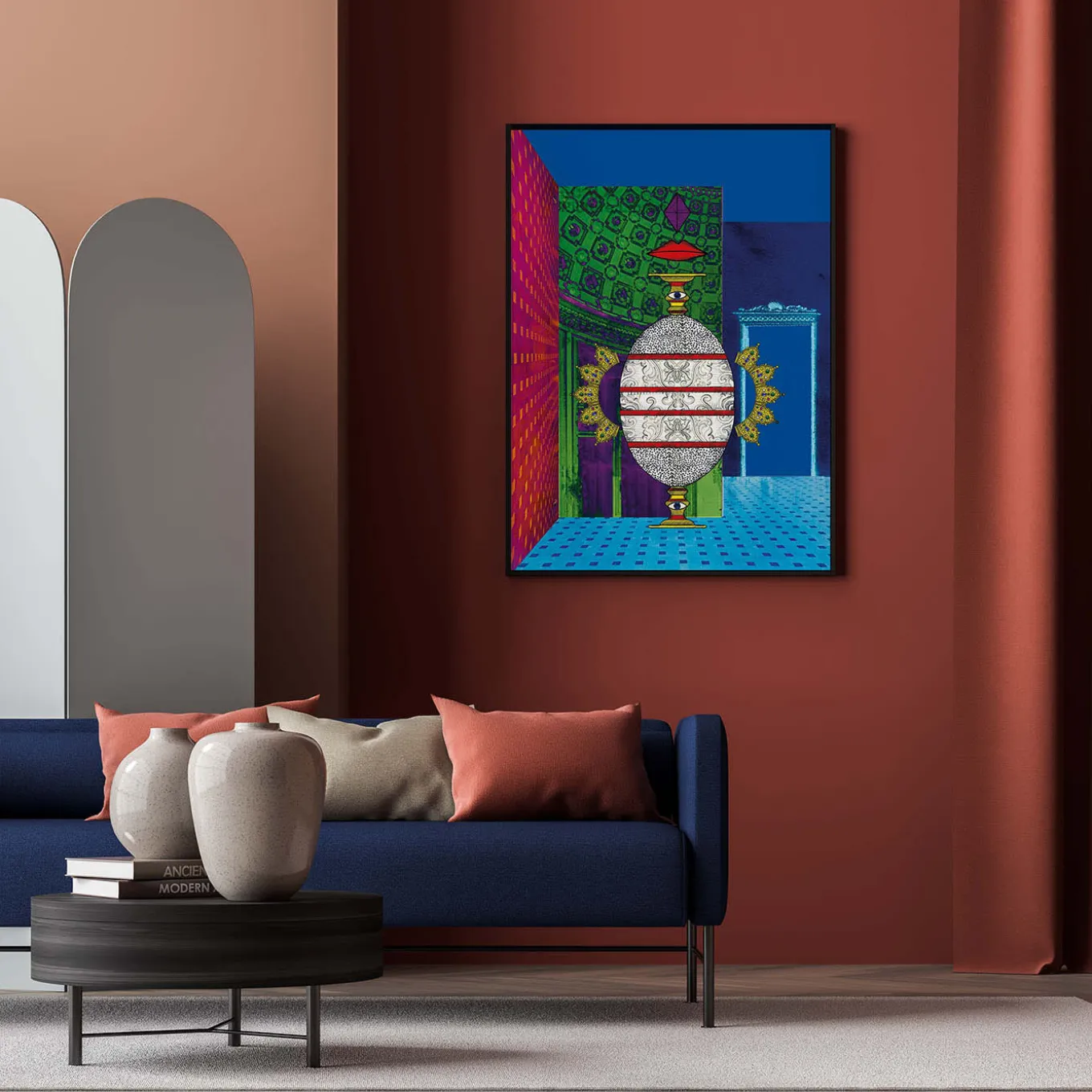 Numbered collectible print designed by Marika Tardio on 100% viscose textile. Each work is signed by the artist, numbered, and accompanied by a certificate of authenticity. The theme of the Fabergé egg is interpreted, with meticulous attention to detail. The Fabergé egg was born from the desire of Tsar Alexander III to give something truly unique and precious to his beloved wife for their twenties together. Limited Edition of 15 pieces. Made Exclusively for Artemest.