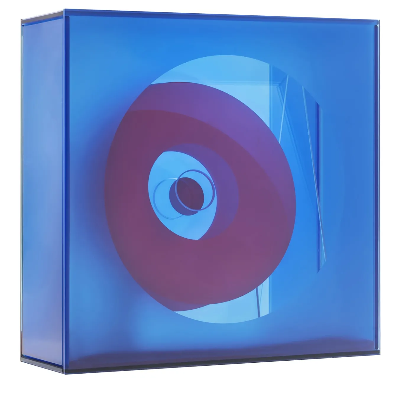 A three-dimensional illustration that takes on volume and shape through areas in light and others in shadow. The deconstruction of reflections on several levels is defined thanks to the calibrated alternation of transparent, reflective, satin or lacquered areas, all placed on a coloured sand background that recalls the origins of glass.