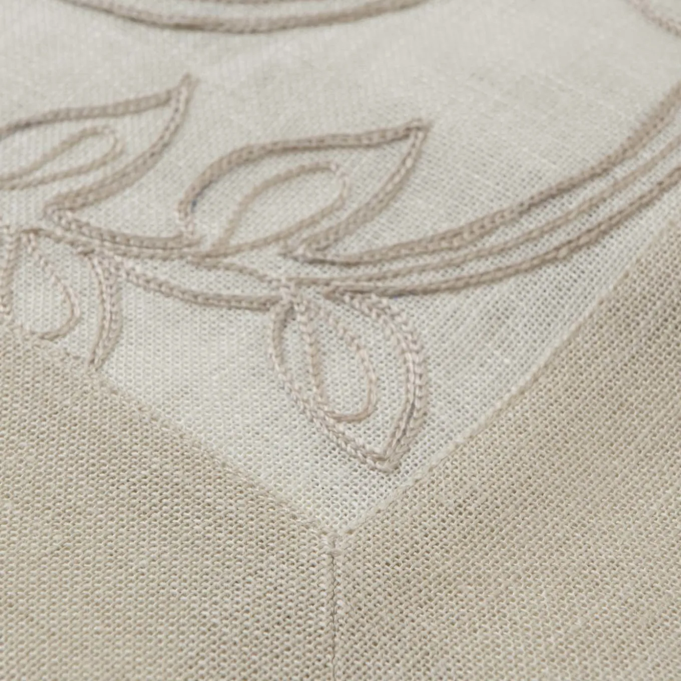 This masterpiece in linen evokes the grace and beauty of the Italian Renaissance, as its name would suggest. The intricate monochrome border features two solid parallel lines separated by a layer of sinuous laurel leaves. The contrasting beige color of the stunning embroidery and borders stands out against the pure white color of the background. A remarkable piece destined to become a family heirloom that will last for generations. Ask the concierge for pricing in all available sizes.