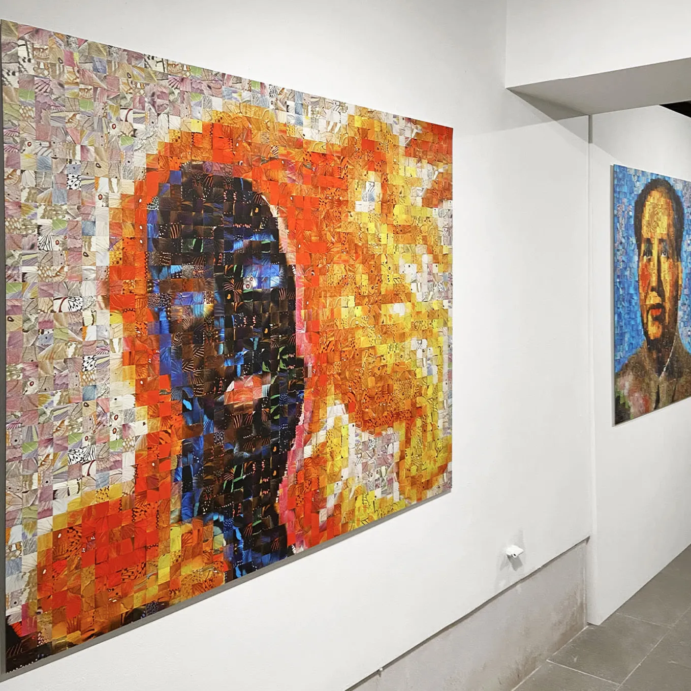Venere is composed of 2000 photographic tiles of butterflies’ wing details that have been used to elaborate this work provided with a double certificate of authenticity and uniqueness countersigned by the artist and blockchain registered. The work can be ordered with a handcrafted wood frame. Revisiting Andy Warhol’s Venere di Botticelli, 2020, metal sublimation print, chromaluxe HD aluminum, 100×125 cm, ed. of 3. Please ask the Concierge service for further information.