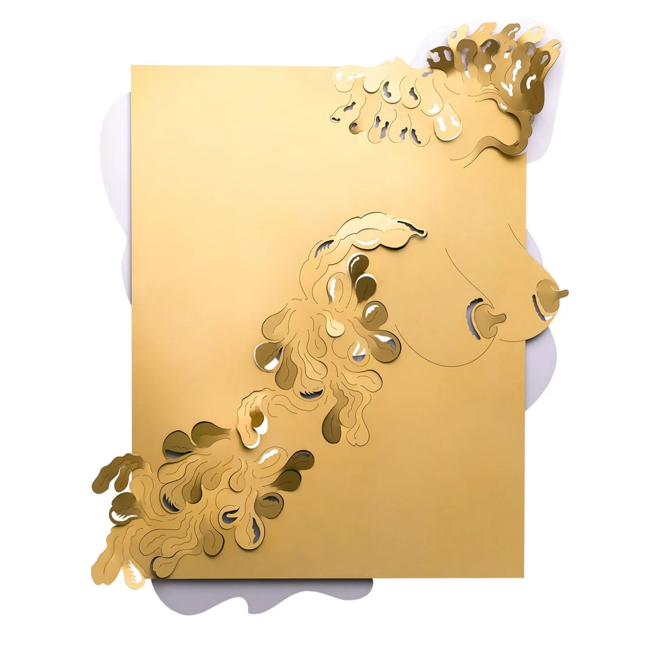 A unique and contemporary take on the myth of Venus, Psyche, and Love, this stupendous piece belongs to an iconic and exclusive series of wall sculptures designed by Matteo Cibic. Handmade of metal, it features bronze and silver finishes, enhanced with a sophisticated shadowing game. Please consult the Concierge for further information.