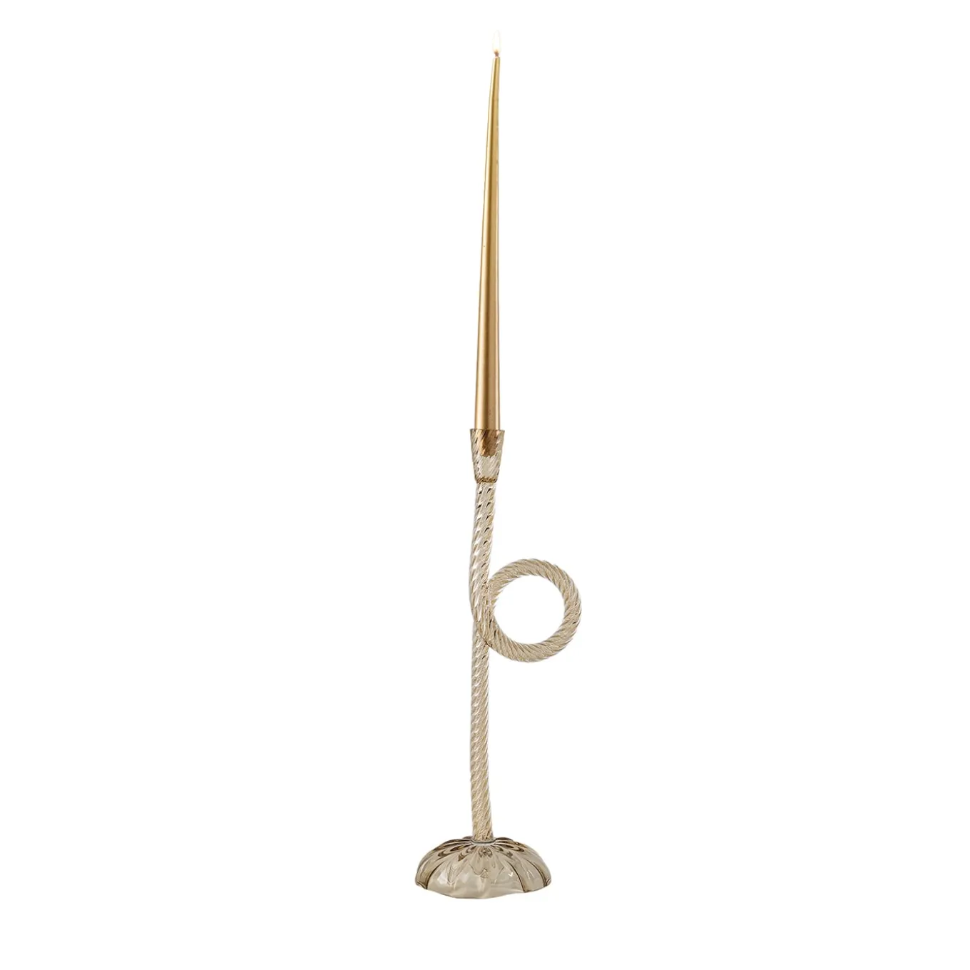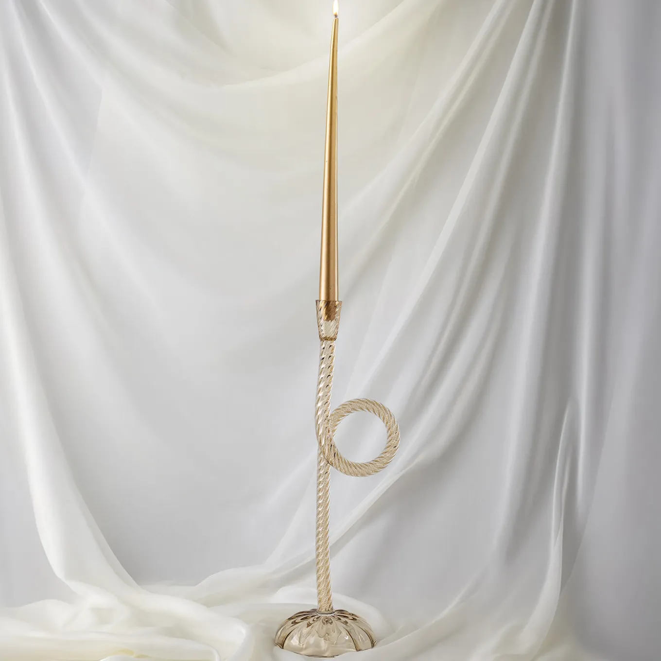 Aina Kari’s tribute to Venice captures the city’s essence through its iconic knots and ropes, symbols of daily Venetian life. This original and contemporary candlestick holder collection highlights the intricate artistry of Murano glassblowing and modeling. Featuring an eclectic, one-of-a-kind design, it adds a striking element to any living space, enhancing the historical allure of the Venetian lagoon while celebrating timeless craftsmanship. The candle included is white.