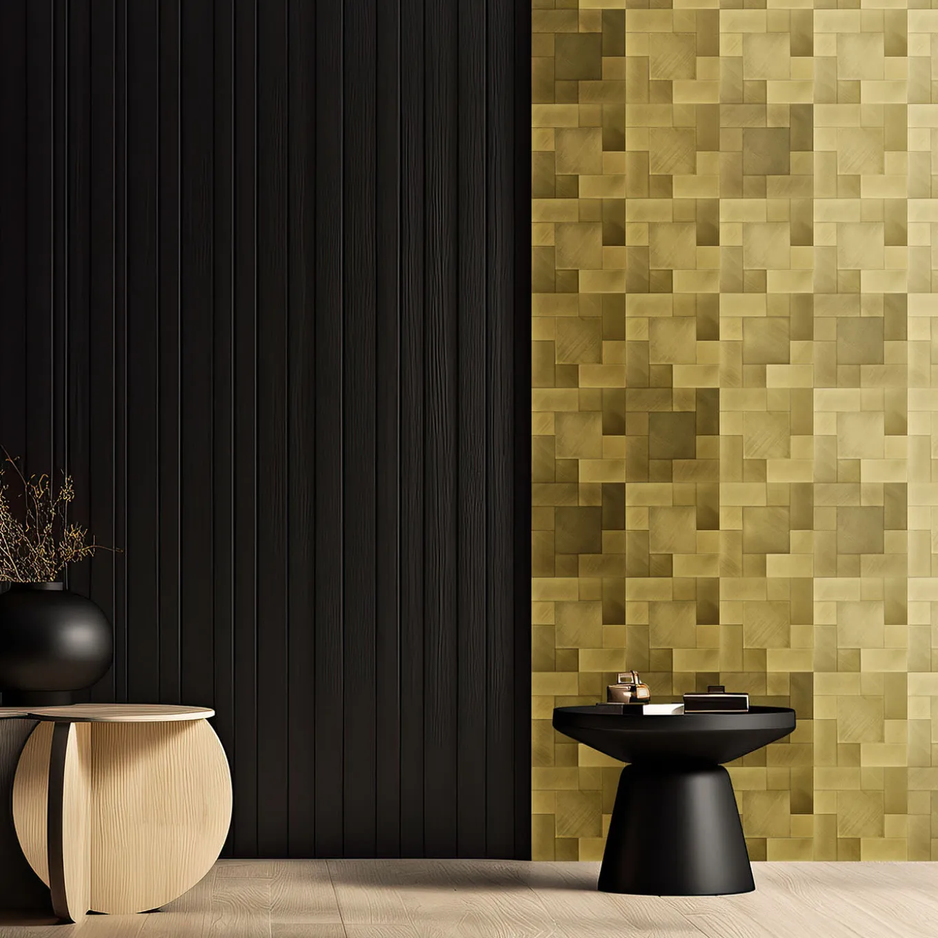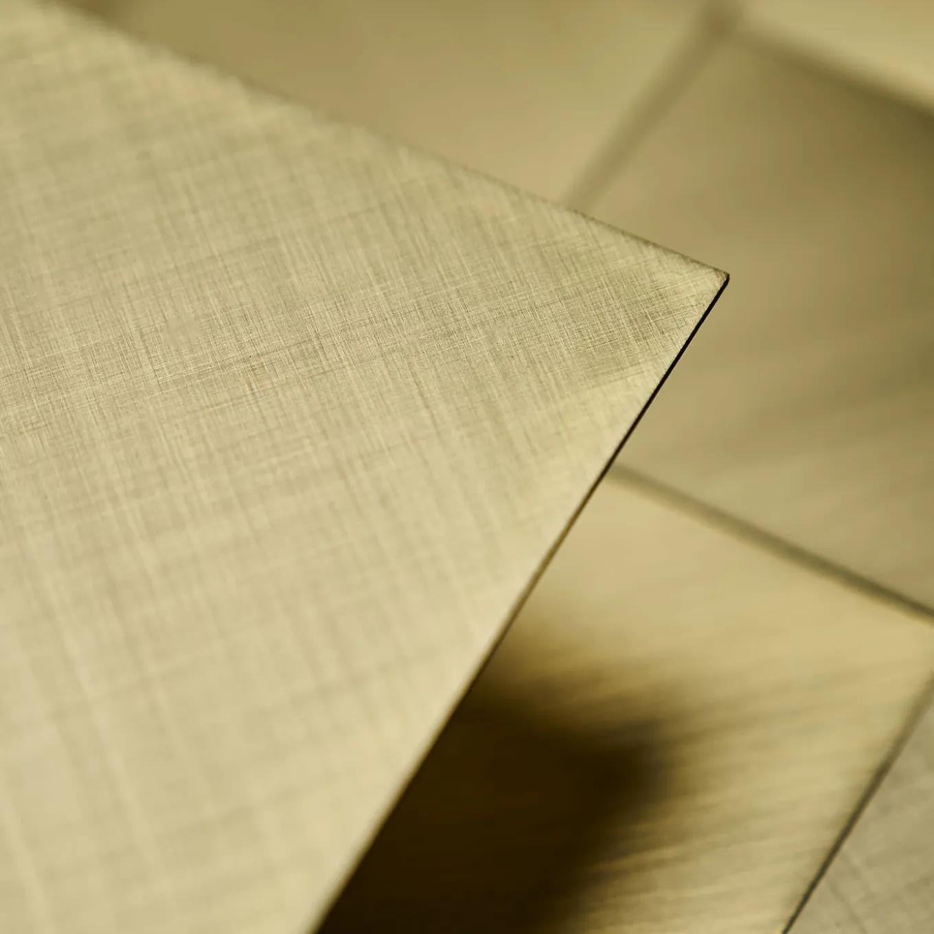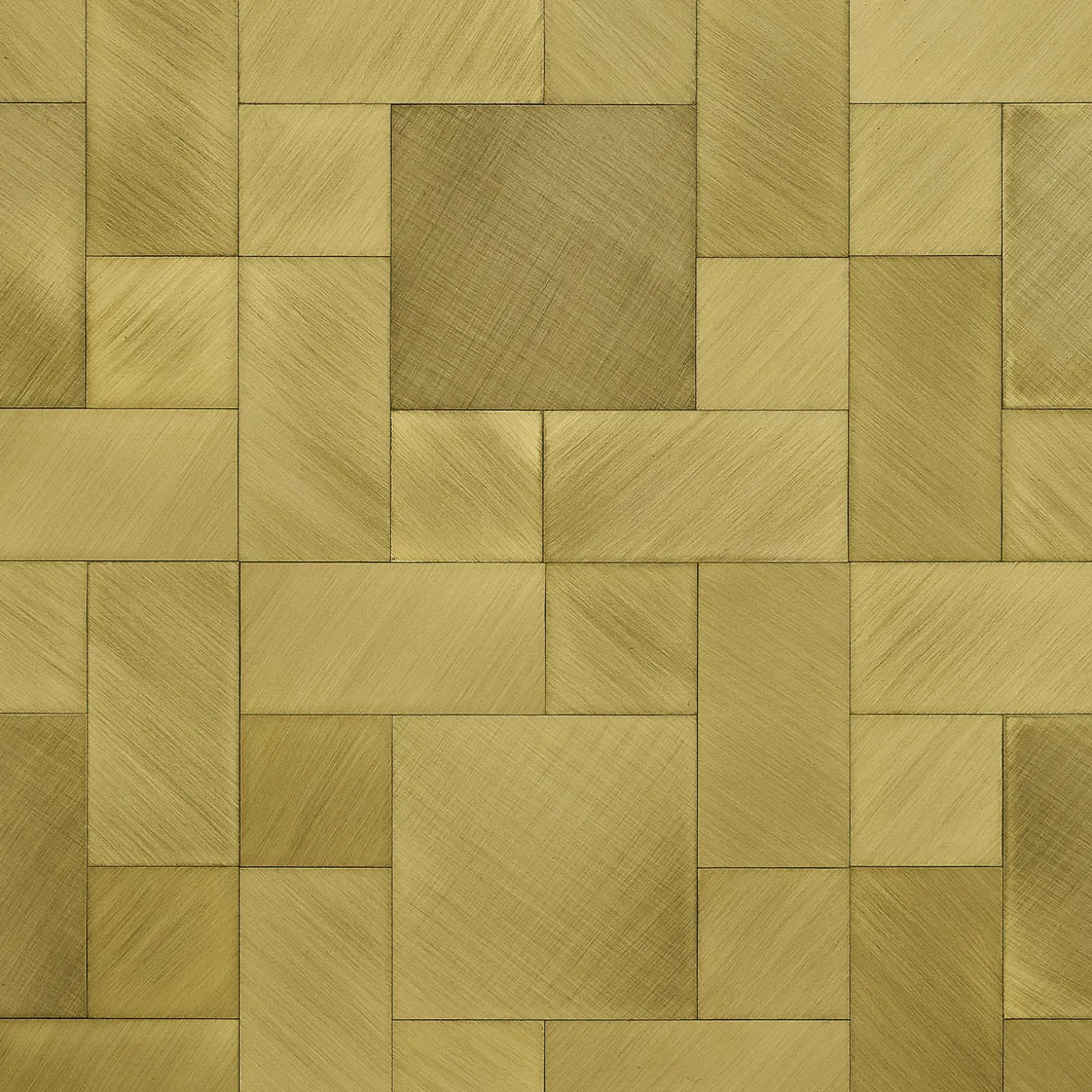Part of the glamorous MetalSkin Collection, this nine-tile brass set stands out for its seductive and warm sheen sure to elevate refined modern interiors. A painstaking artisan process of Venetian tradition is behind every tile, which surprises with dynamic lighting effects enhanced by the two different orientations their satin metallic finish flaunts. The price listed is for the set of 9 tiles. Product images show the different compositions that can be made. Contact the concierge for more information and details.