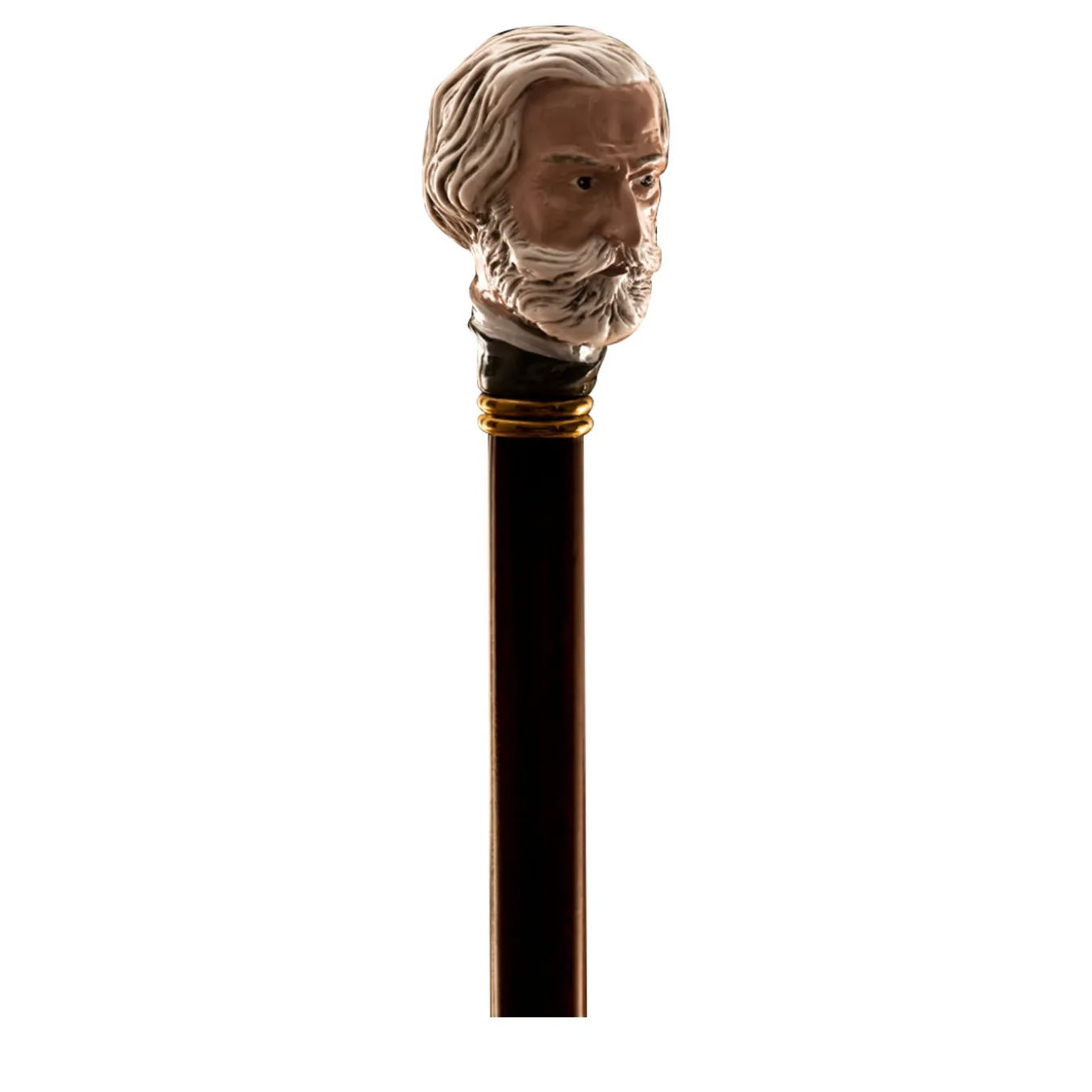 Characterized by an elegant and classic design, this stick features a metal handle richly decorated with elegant patterns embossed on the surface. The conical shaft of this sophisticated accessory is crafted in gloss black beech wood and has a silver-plated brass tip with protective rubber end. This is a collectible item, not to be used for walking.