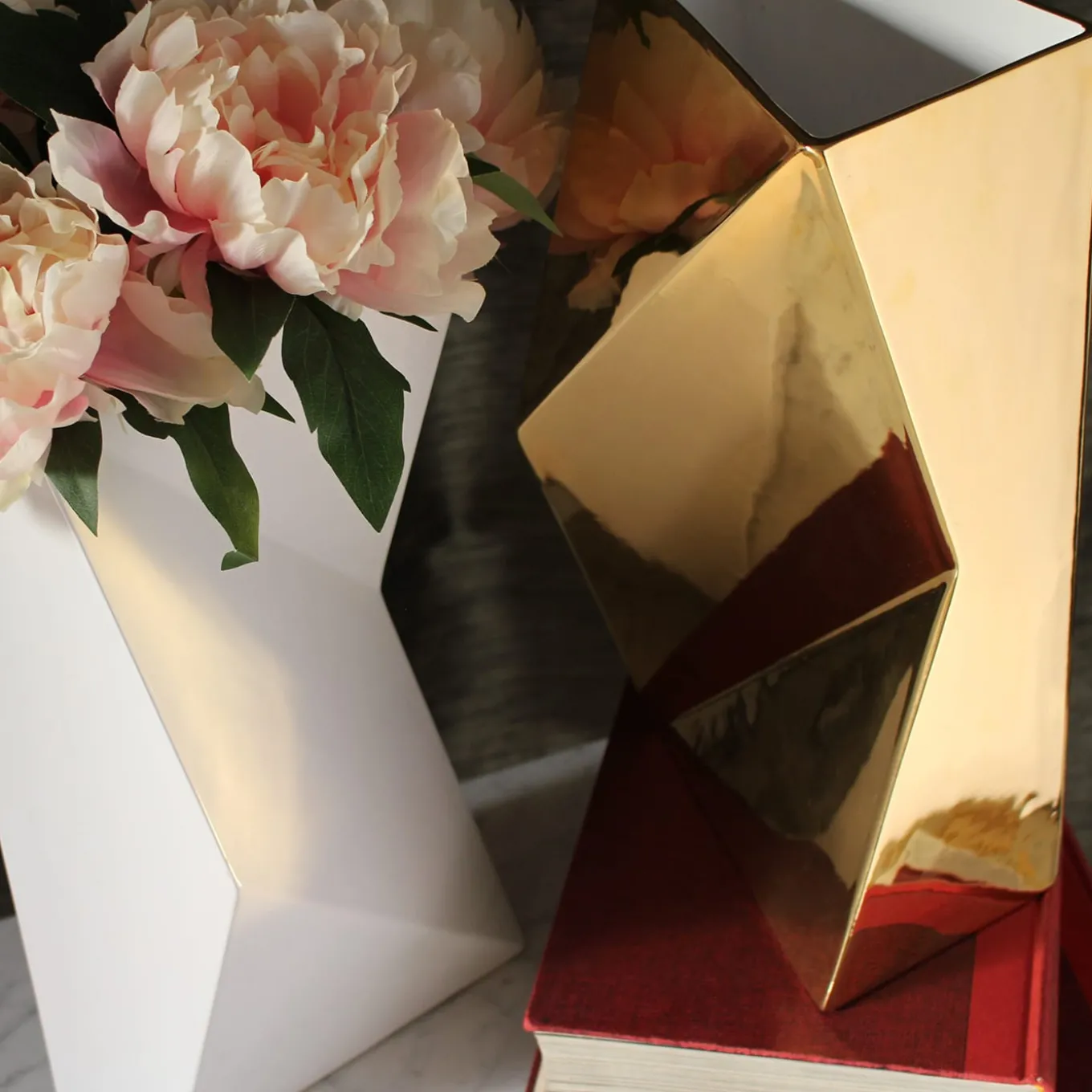 A collection of ceramic vases, characterized by an essential geometry and pure, unique shapes. They could be seen as prisms cut from an ingot. They can be appreciated not only as vases with flowers but also as simple sculptures. The Verso A Vase can be paired with Verso B Vase.