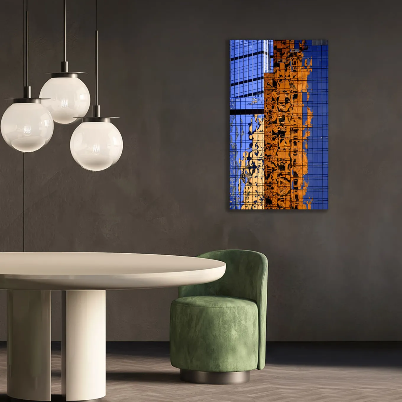 Fine Art Photography, Limited Edition of 3 copies, copy 2 of 3. Print on Plexiglass with dibond bottom. In the “Vibrations series”, the artist researches abstract and surrealistic shapes produced by the windows of urban skyscrapers. As a result of a complex process of photographic choices and editing, the artist creates works of art in between photography and painting that are inspired by Surrealism and Futurism. Delivered with a certificate of authenticity, can be customized in format.
