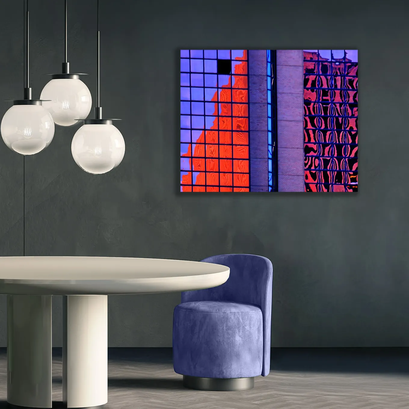 Fine Art Photography, Limited Edition of 3 copies, copy 2 of 3. Print on Plexiglass with dibond bottom. In the “Vibrations series”, the artist researches abstract and surrealistic shapes produced by the windows of urban skyscrapers. As a result of a complex process of photographic choices and editing, the artist creates works of art in between photography and painting that are inspired by Surrealism and Futurism. Delivered with a certificate of authenticity, can be customized in format.
