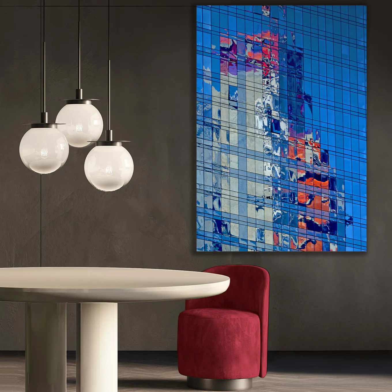 Fine Art Photography, Limited Edition of 3 copies, copy 2 of 3. Print on Plexiglass with dibond bottom. In the “Vibrations series”, the artist researches abstract and surrealistic shapes produced by the windows of urban skyscrapers. As a result of a complex process of photographic choices and editing, the artist creates works of art in between photography and painting that are inspired by Surrealism and Futurism. Delivered with a certificate of authenticity, can be customized in format.