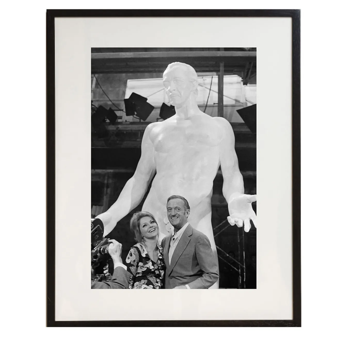This pigment print on baryta paper was shot by photographer Keyston. In this particular shot, we are witnessing English actor David Niven. He was unveiling a nude statue of himself at the Cinecitta studios in Rome, assisted by actress Virna Lisi (1936 – 2014), on the 20th May 1970. Traditional wood frame included. Print size is 12×16″ / 30×40 cm and frame size is 16x23x2″ / 40x58x5 cm. Photo by Keystone/Hulton Archive/Getty Images. Accompanied by certificate of authenticity.