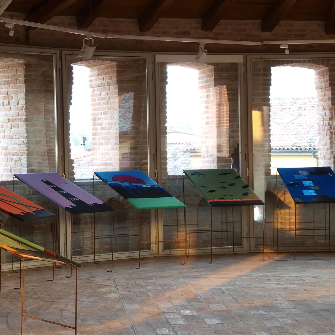 This stunning, one-off tapestry weft by hand by textile artist Marta Pederzoli is entirely fashioned of fibers from recycled PET bottles. Ennio Nonni designed this objet d’art to raise awareness on pollution and on how human actions impact nature. No humans are depicted, only a green foreground with multiple layers of urban skylines, silent symbols of confused, dystopian futurist cities. A giant, purple sun rises from behind, interrupting the azure of the sky.