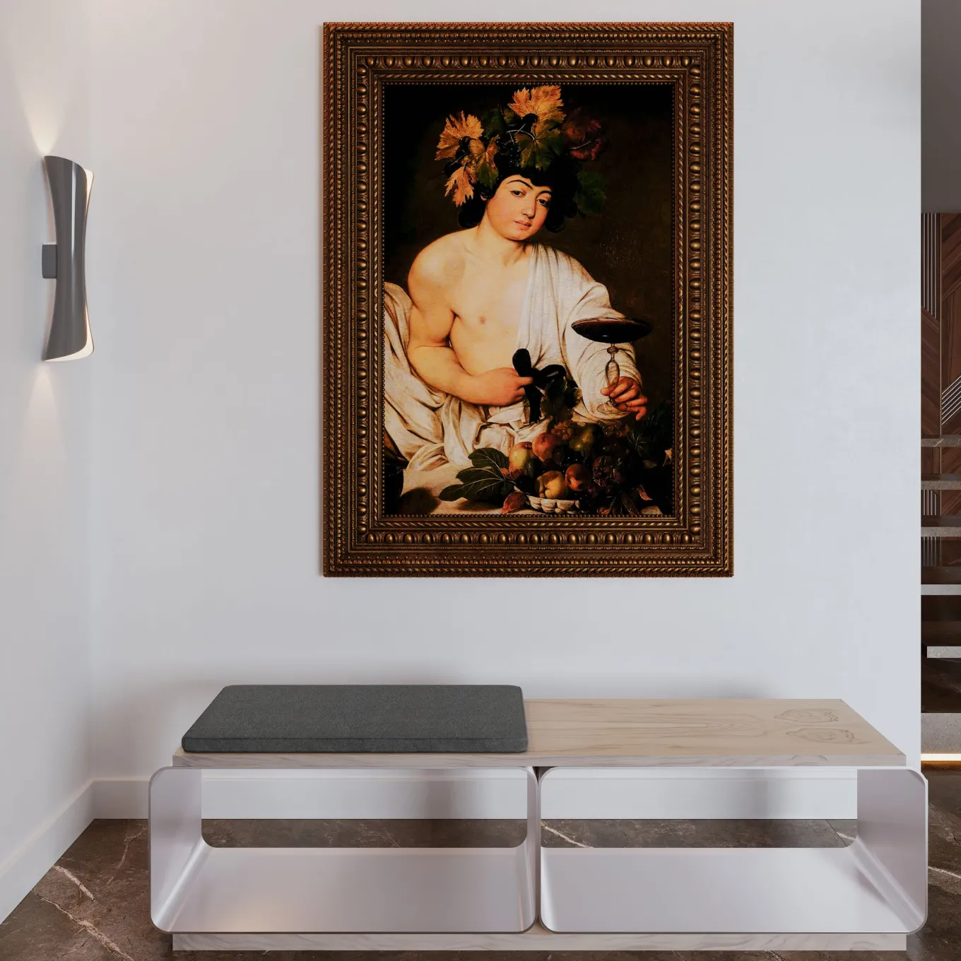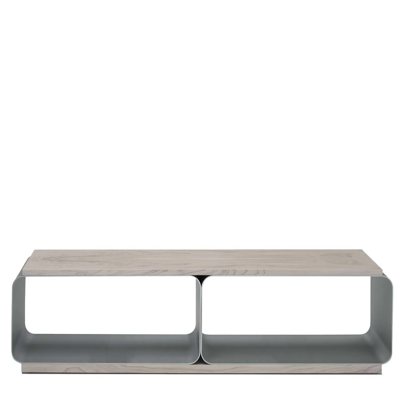 This bench is composed of two satin anodized aluminum supporting structures covered by an olive wood top with whitened finish. The two compartment, hollowed out base can be used to store shoes, books or other objects, making the item stylish and practical. From the brand’s Soul Collection. Width: 182.6 cm.