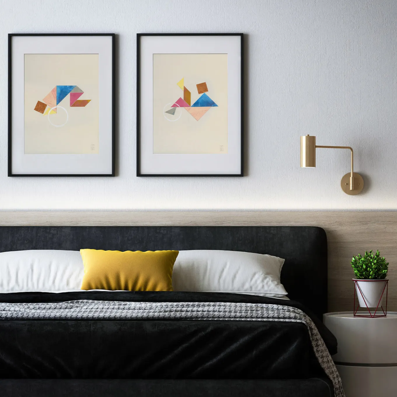 Part of a series of six iconic design, this striking print interprets the Tangram game, a dissection puzzle consisting of seven flat polygons, called tans in a deliberately incorrect way to symbolize the extremely subtle line between right and wrong. Handmade following various techniques, it is printed on 100% cotton paper using the fine art giclée method. Please contact the Concierge to include a frame or get the original painted cardboard version.