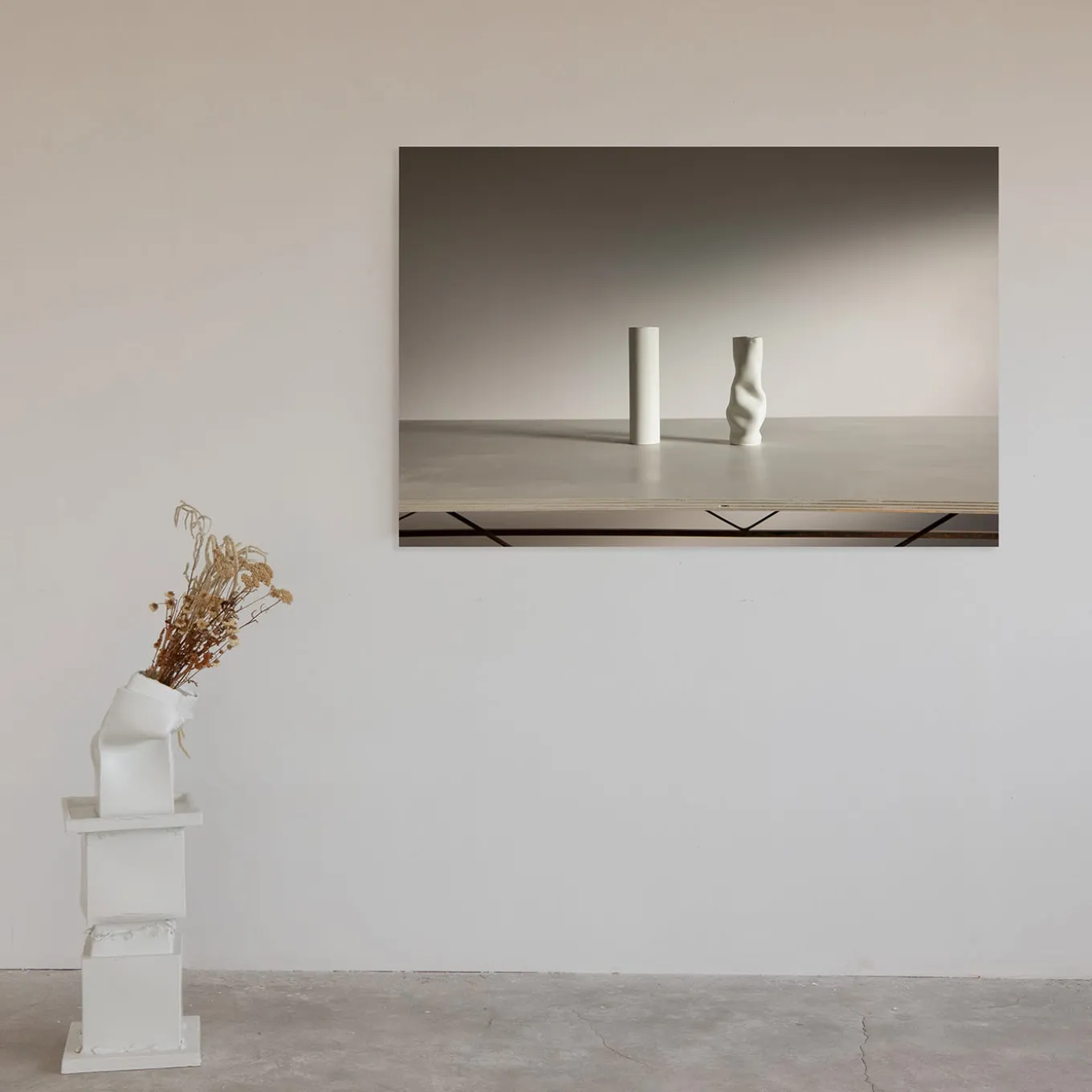 Waiting in Asiago is a striking pigment print on Fine Art paper, mounted on dibond, and sold unframed with a Certificate of Authenticity. Part of the Break the Mold project, it critiques mass production while celebrating the artist’s roots in Nove di Bassano, Italy. Printed nearly life-size, the photograph features asymmetrical ceramic vases that evoke the abandoned factories of Nove. The delicate forms, reminiscent of Giorgio Morandi’s work, symbolize fragility and impermanence. This piece invites reflection on the balance between art, craftsmanship, and memory.