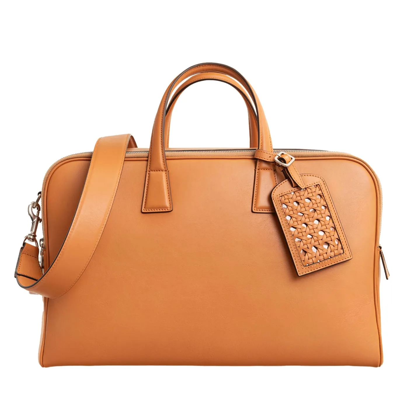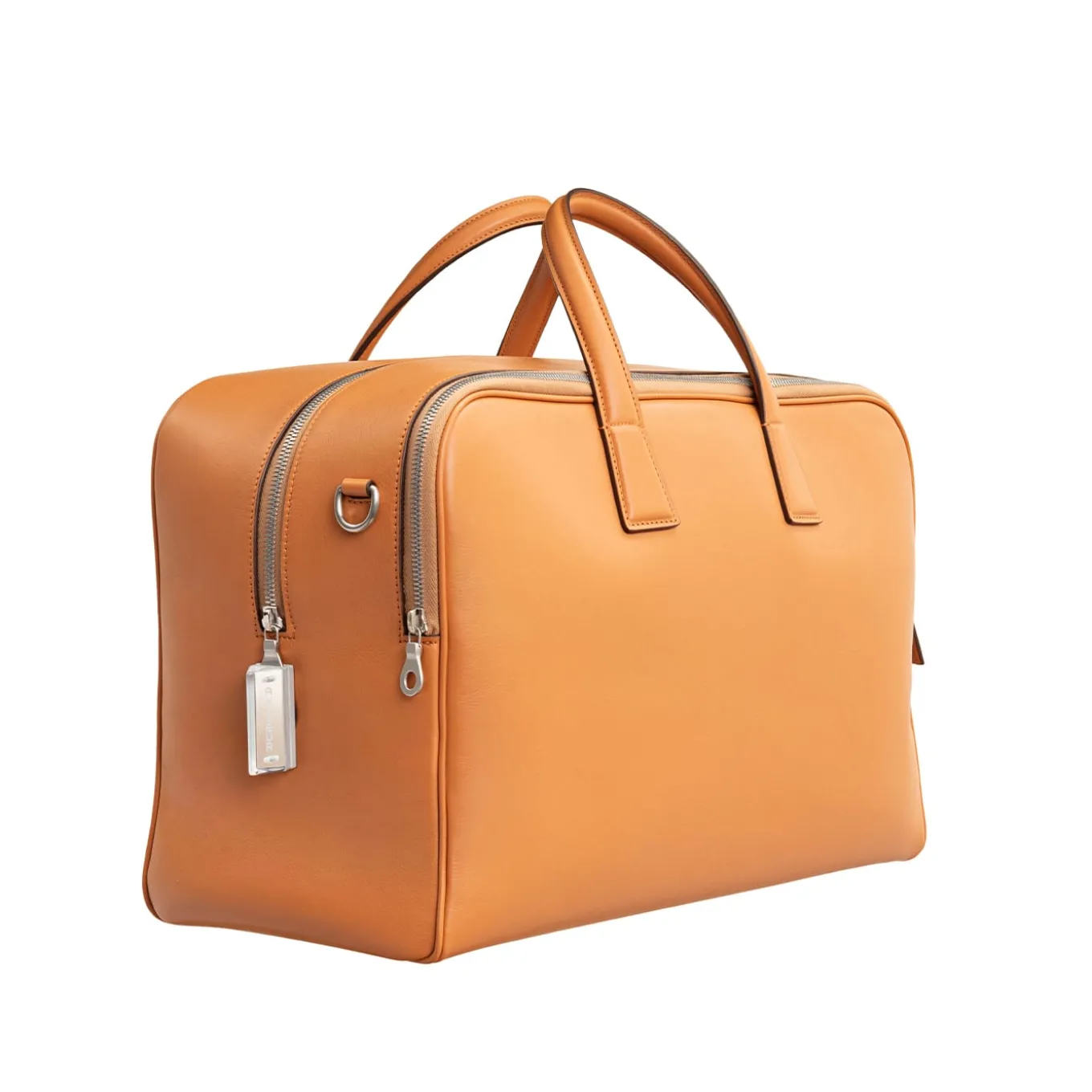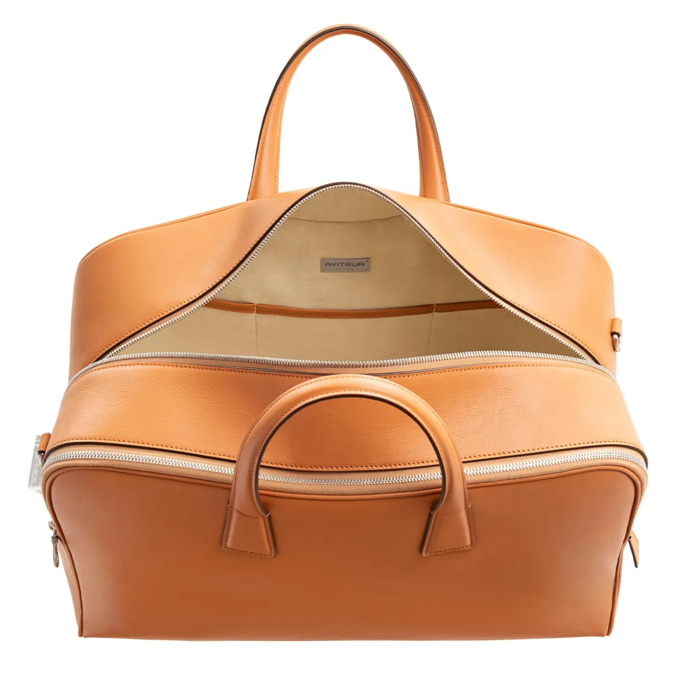 A versatile, lightweight overnight bag in the classic “Boston” shape, made from the finest quality calfskin leather and lined in luxurious Alcantara. Anodized brass hardware in Palladium. Aviteur prism clasp. Luggage Tag sold separately.