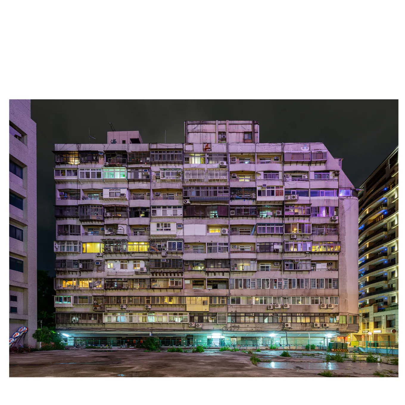 A nocturnal view of a popular condo building from Taipei, Taiwan was captured by a shot taken in 2019 and here impressed on signed Ilford Galerie Fine Art Texture Silk paper (270 g). Sounds and voices filling the thick summer air come from the one-hundred windows reached by a diffused violet glow. Supplied with a Certified Media Digigraphie authenticity certificate, the print belongs to a limited series of 10+2 pieces. Please contact the Concierge for available size options.