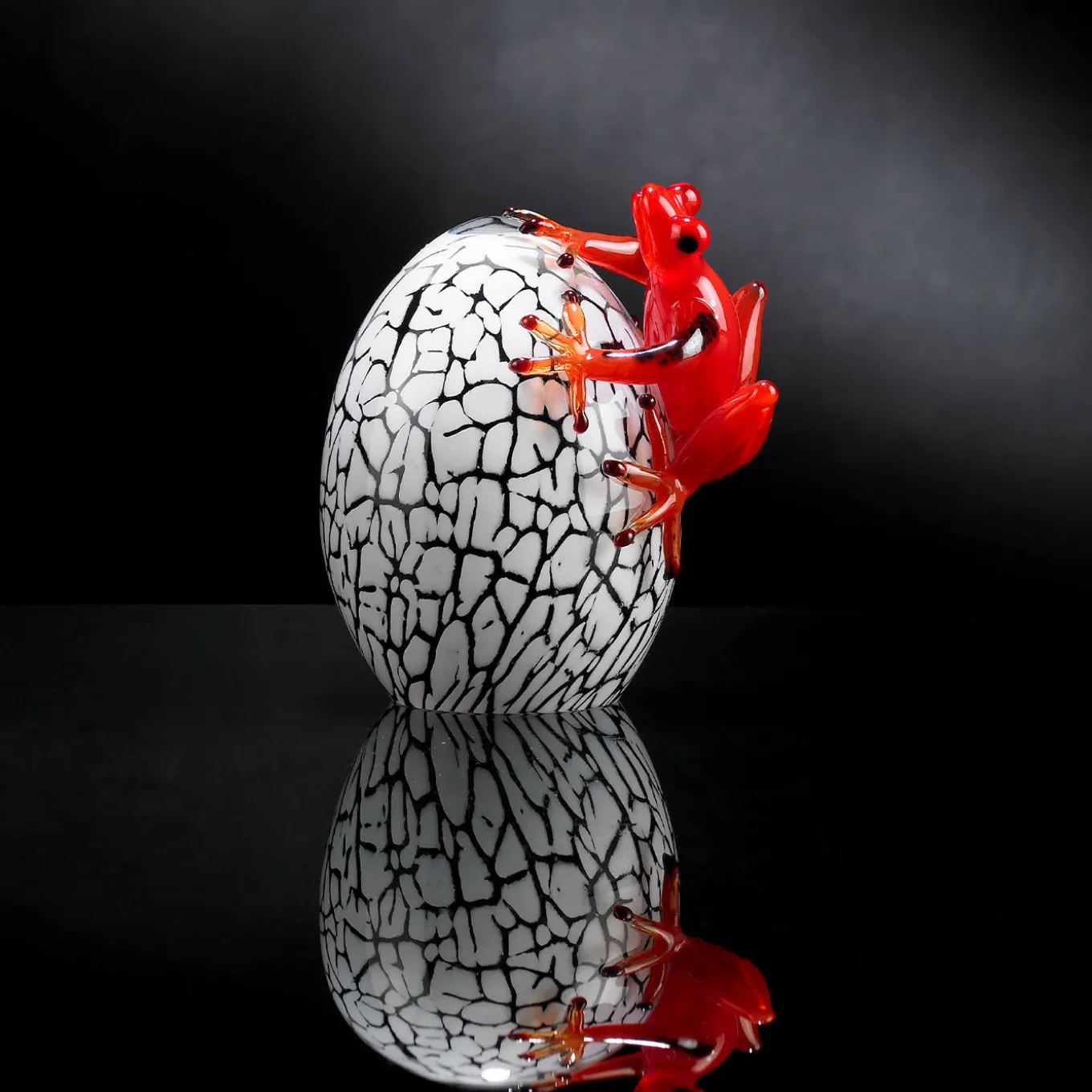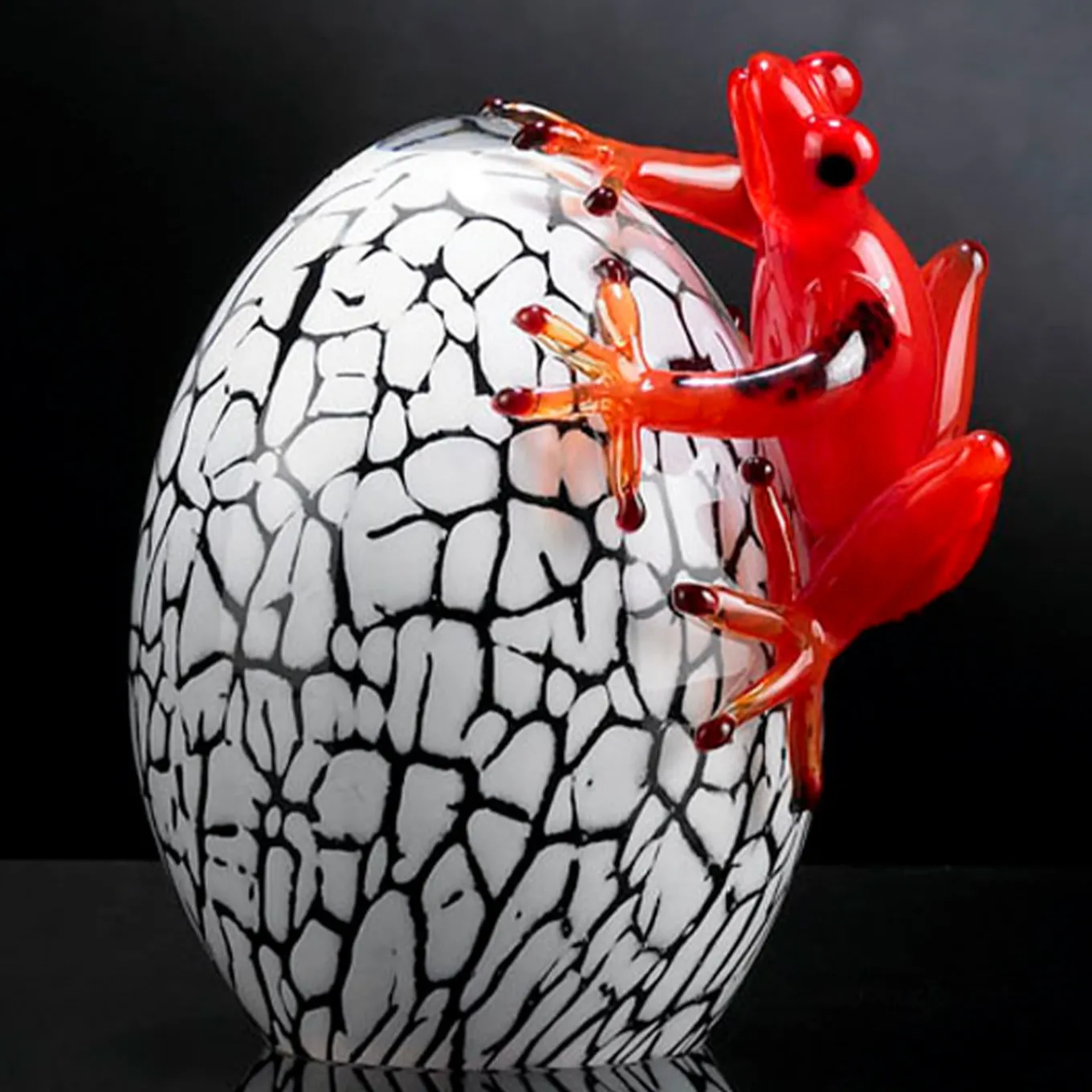Part of a striking series of decorative glass objets d’art, this piece features a red gecko on a white cracked egg. Masterfully crafted by expert artisans using traditional techniques, each piece is entirely unique. Collect the series and display it with the other pieces by VG to infuse a charming, playful look to any room.