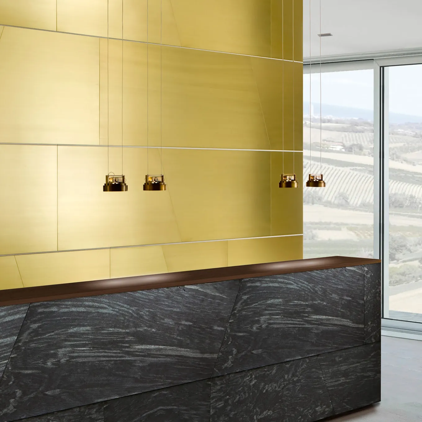This elegant spotlight is in burnished brass and is perfect to hang from any type of ceiling to illuminate a variety of interiors, thanks to its adjustable height. The linear design and use of precious materials are staples of Laura Meroni and this piece is no exception: a perfect balance of uniqueness and elegance. (LED spot: 15W, 75W output).