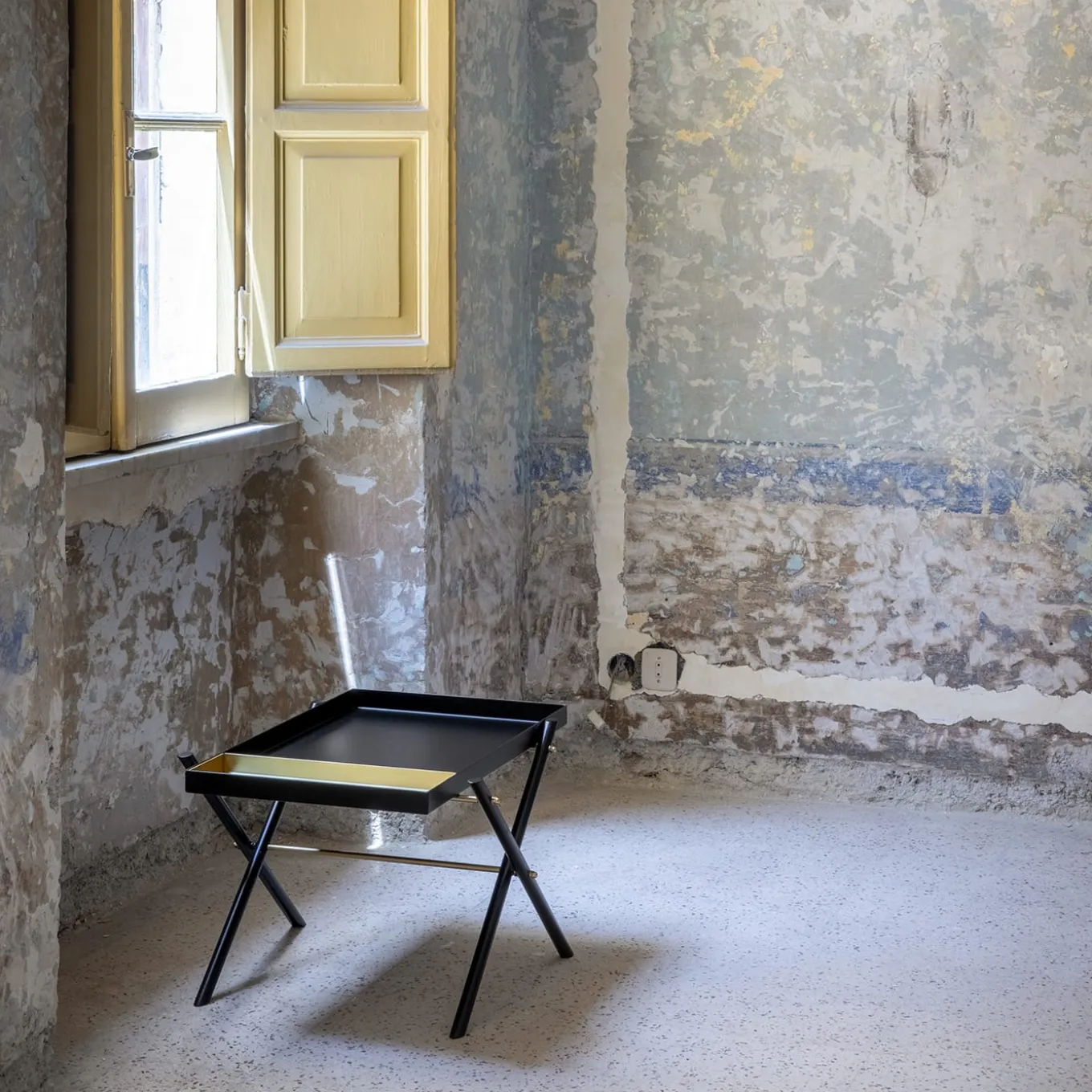 Brimming with sophistication, XX is an elegant tray table fit for all occasions. Crafted with precision, its lacquered iron and brushed brass top rests on a foldable, X-shape frame. The small, versatile brass inner tray seamlessly fits within the iron top, serving as an accent and storage compartment. Brass details and sleek sheet metal lines make XX a distinguished accessory for contemporary or traditional dining rooms. Available in a range of exquisite colors to suit any decor.