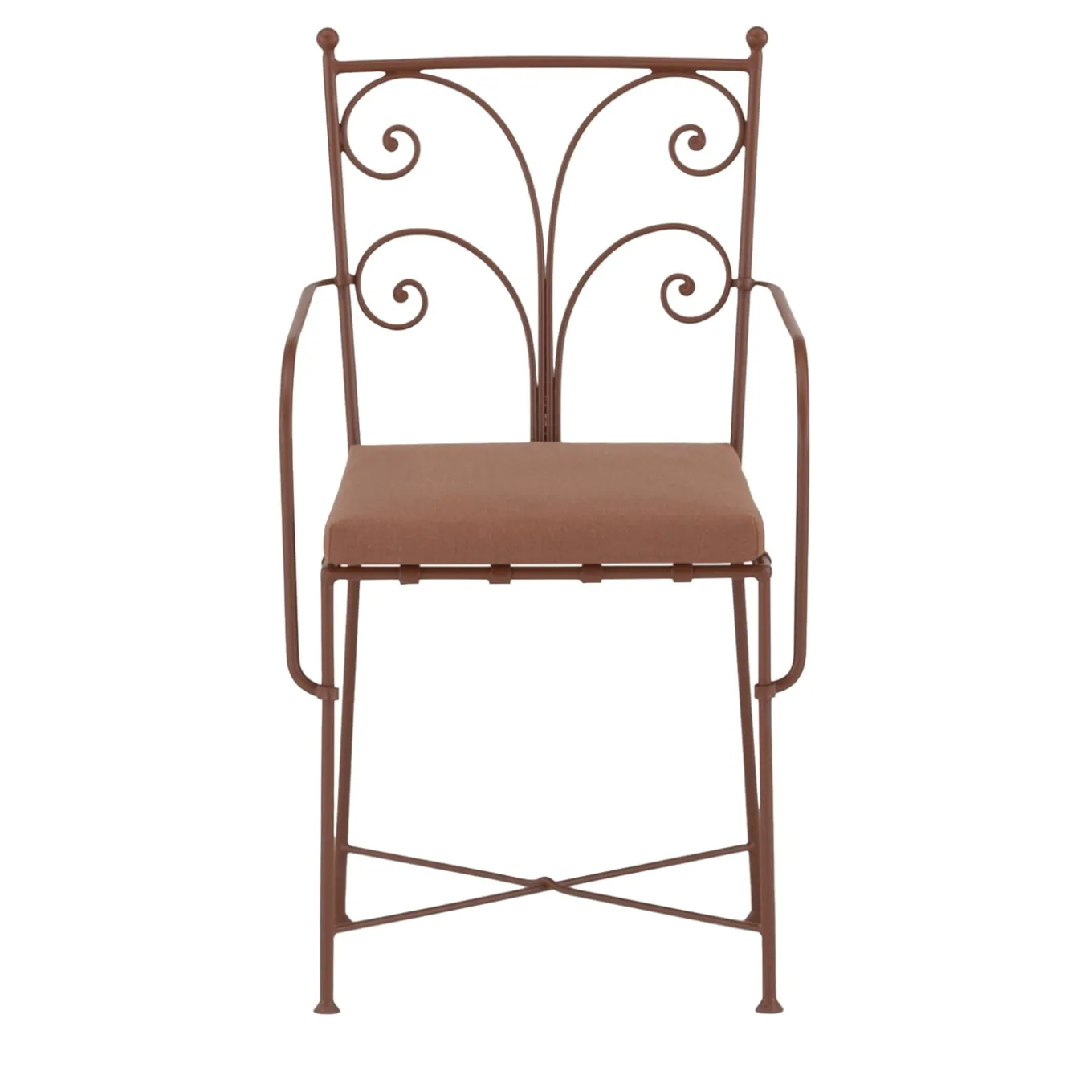 As graceful as it is sturdy, this galvanized iron chair makes for the perfect solution for comfortably sitting while enjoying the pleasure of afternoon tea. Harmonious armrests are fitted to its clean-lined structure for maximizing the comfort already provided by its cushioned seat and backrest marked by lively curls. Please contact the Concierge for available color variants.