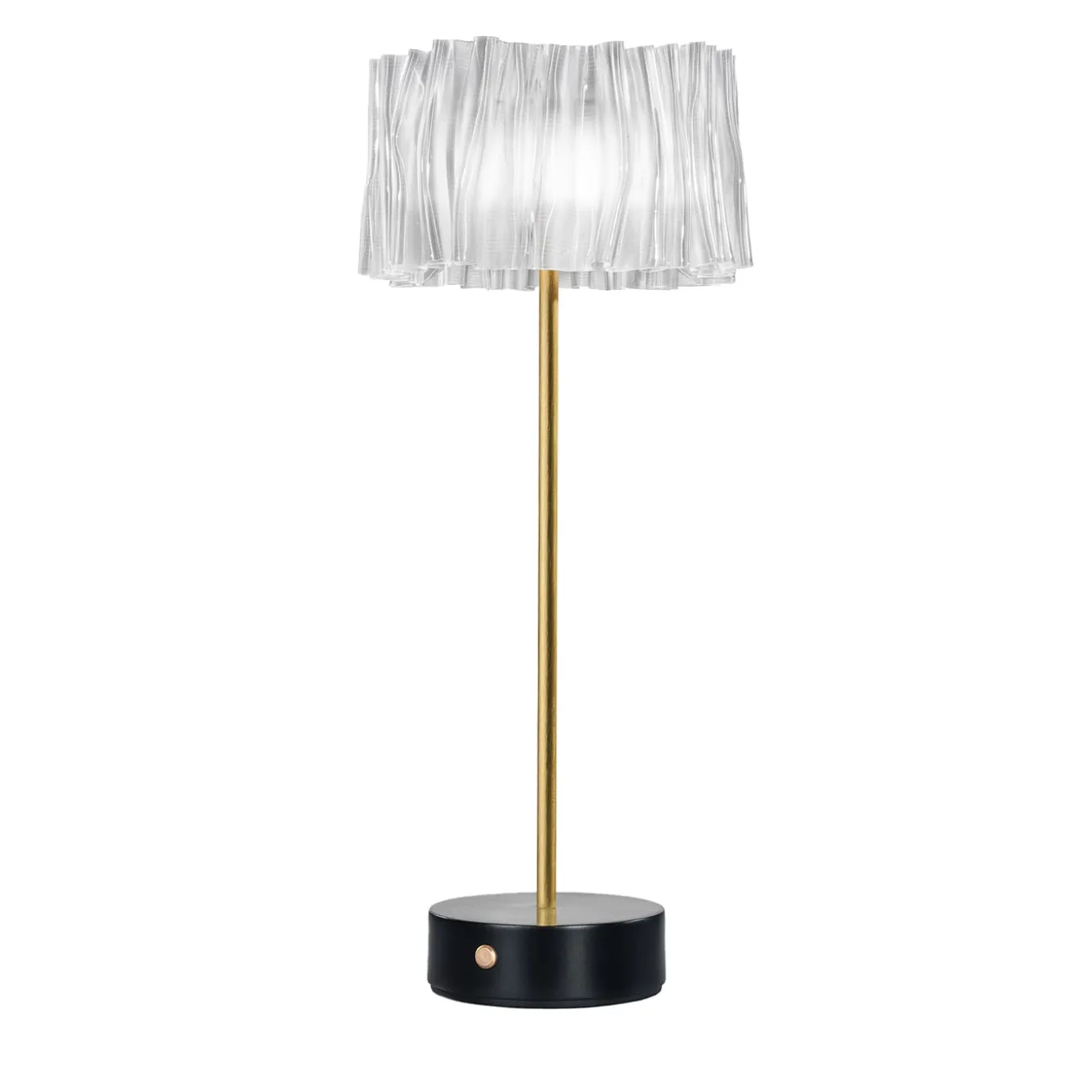 Marc Sadler explores the infinite possibilities of Slamp’s technopolymers with Accordéon, conjuring the image of a textile plissé or an accordion’s bellows. The battery-charged table version features a transparent shade finished in satin white, ensuring uniform lighting, and a white or matte black base and a semi-matte satin anodized aluminum stand, ensuring additional stability. Accordéon is perfect alone to illuminate an intimate dinner or multiple events.