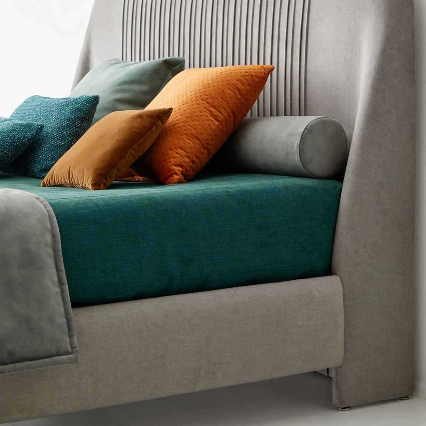 Defined by its sumptuous design and impeccable craftsmanship, this bed redefines luxury living. Wrapped in opulent Deluxe Velvet 01, both the headboard and frame exude regal elegance. With cleverly padded contours creating a mesmerizing floating effect, the bed becomes the focal point of any bedroom, radiating sophistication and charm. Supported by a sturdy wooden slatted base measuring 180×200 cm, durability and indulgence intertwine seamlessly. Mattress and bedding not included with purchase.