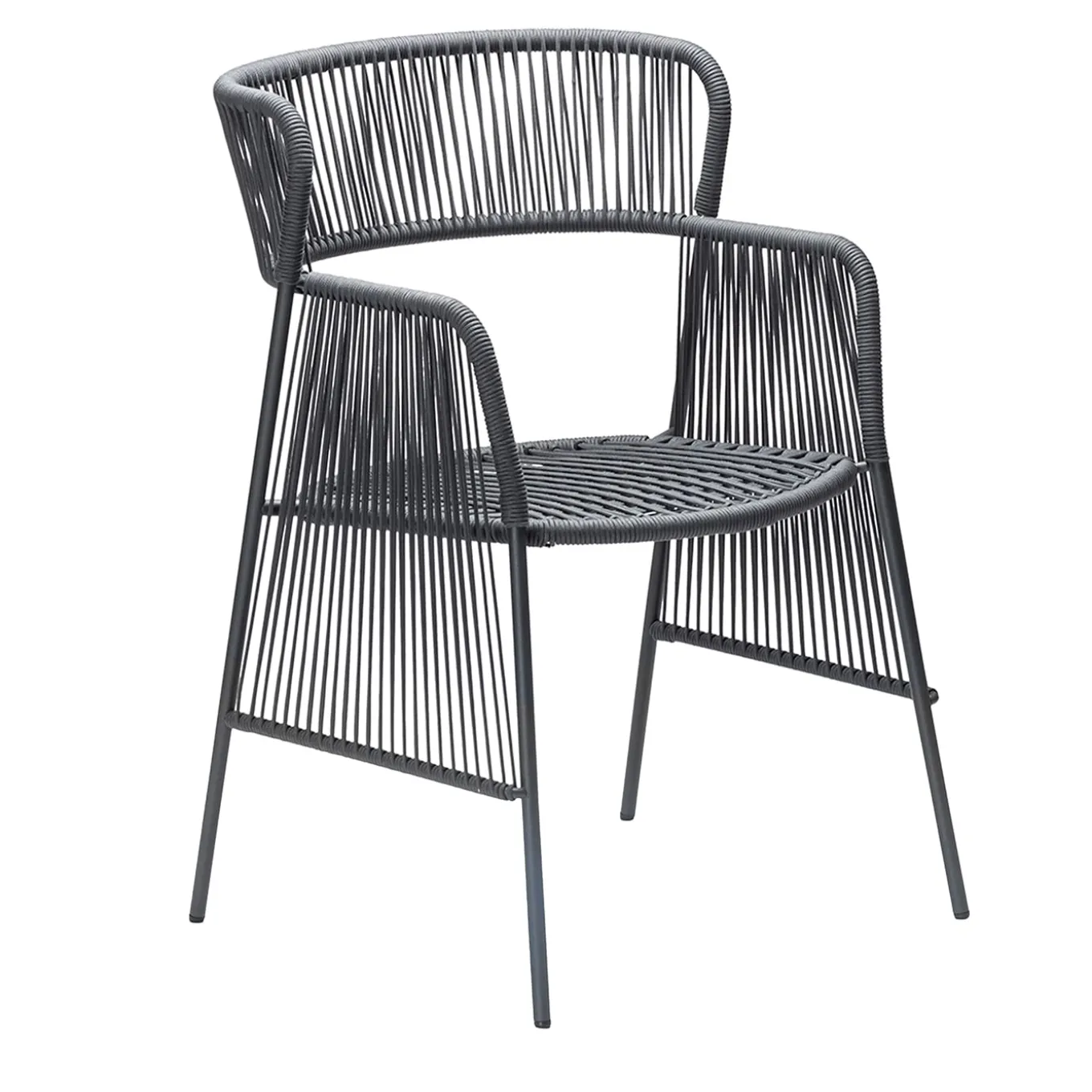 This elegant Sand powder-coated metal frame for outdoor use. Handwoven with midnight anthracite marine rope. Other colors are available.